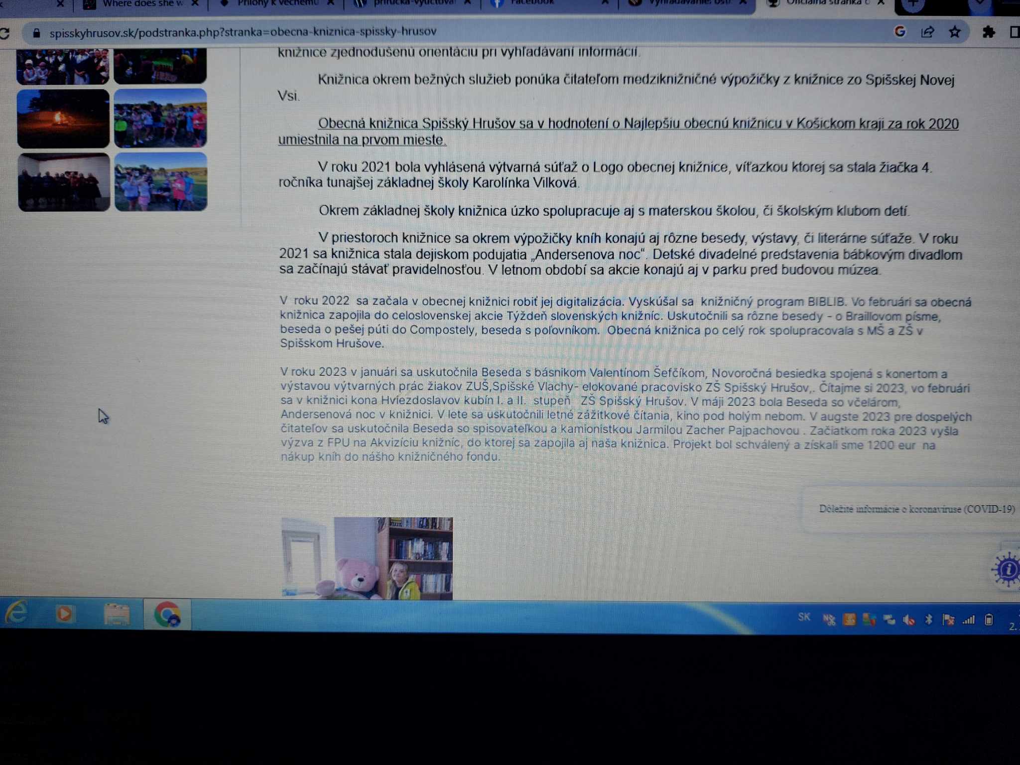 Propagácia projektu na webovej stránke obce Spišský Hrušov