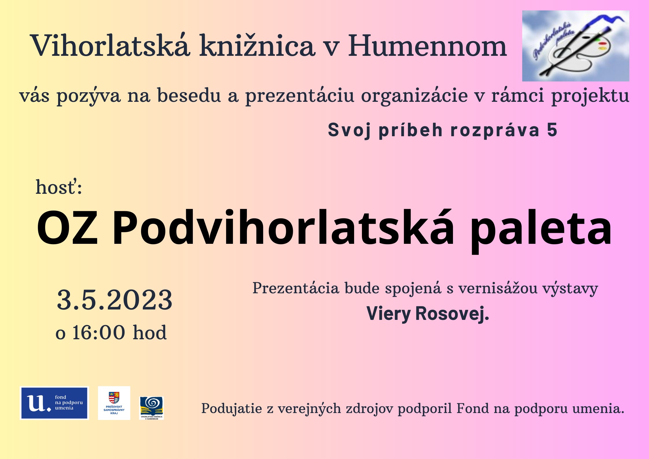 Prezentácia činnosti a prednáška o aktivitách OZ Podvihorlatská paleta, združenia, ktoré tvoria amatérski výtvarní umelci a umelkyne