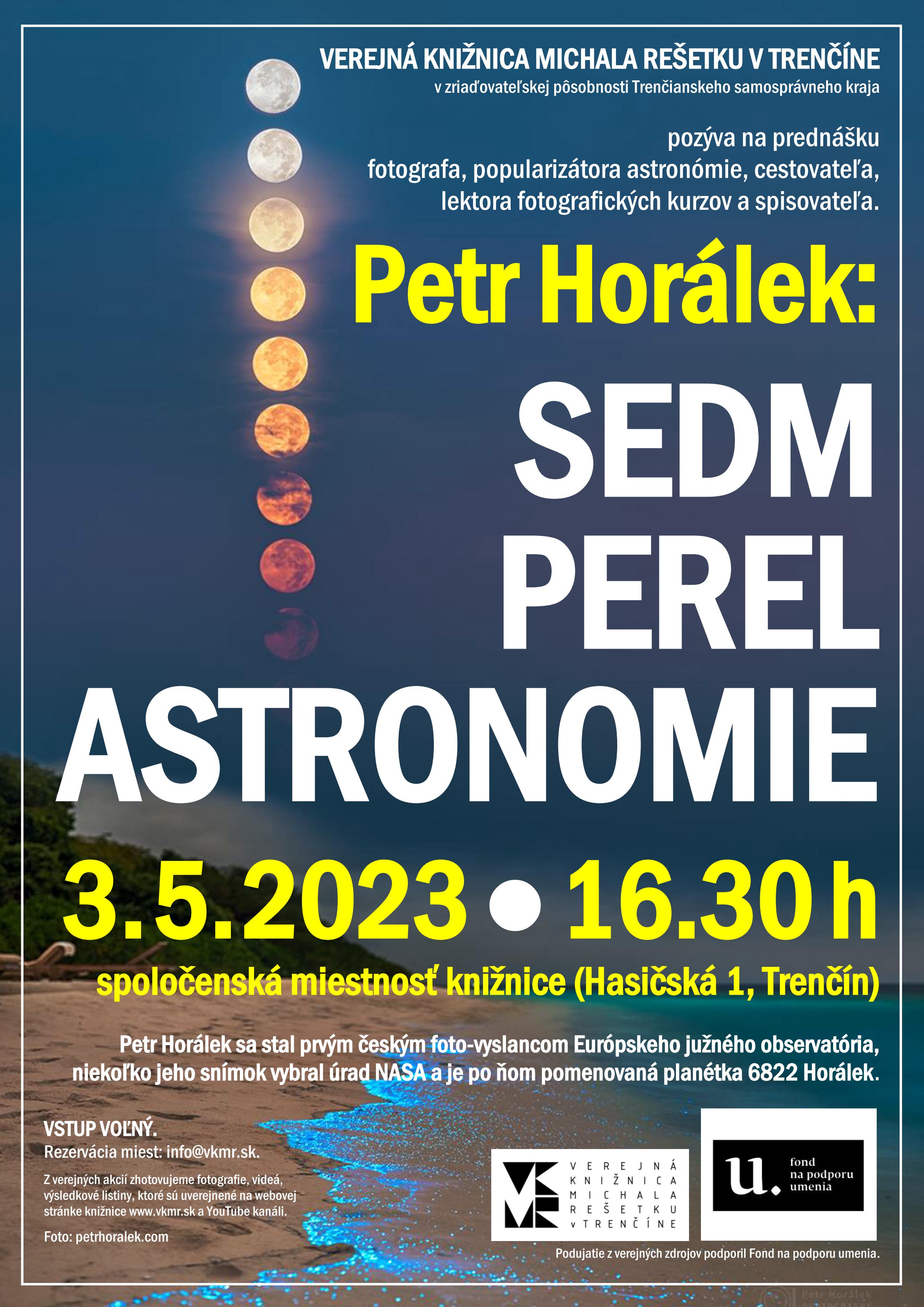 Zámerom projektu je pokračovanie v realizácii úspešných komunitných a vzdelávacích podujatí s cieľom zvyšovať vzdelanostnú úroveň návštevníkov, podporovať čítanie a rozvíjať čitateľskú gramotnosť. Besedy, prednášky, autorské čítania budú dopĺňať motivačné súťaže, tvorivé dielne a iné popularizačné aktivity určené pre deti, mládež, dospelých, seniorov. Aktuálne pozývame na prednášku P. Horálka: Sedem perel astronómie.