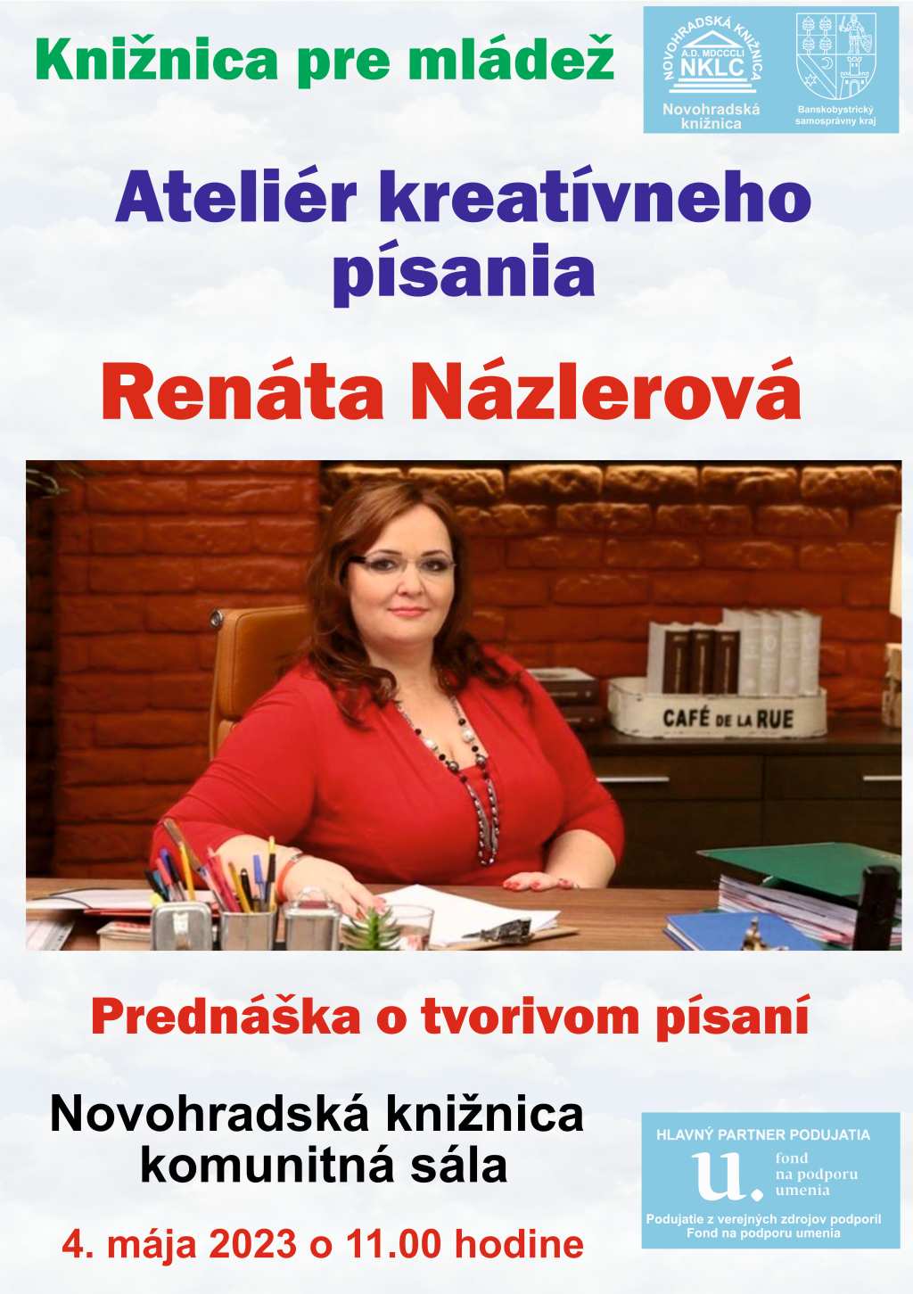 Prednáška s Renátou Názlerovou, autorkou niekoľkých kníh o kreatívnom písaní.