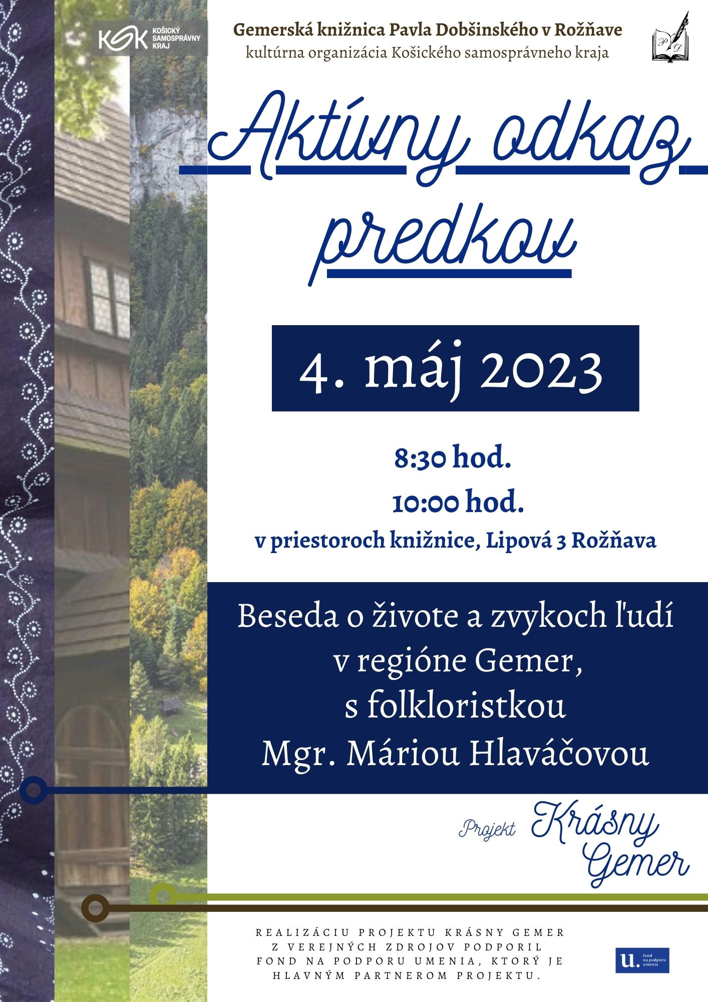 Zámerom projektu je pokračovanie v realizácii úspešných komunitných a vzdelávacích podujatí s cieľom zvyšovať vzdelanostnú úroveň návštevníkov, podporovať čítanie a rozvíjať čitateľskú gramotnosť. Besedy, prednášky, autorské čítania budú dopĺňať motivačné súťaže, tvorivé dielne a iné popularizačné aktivity určené pre deti, mládež, dospelých, seniorov. Aktuálne pozývame na autorskú besedu I. Henzályovej a prezentáciu knihy Rok bylinkára.
