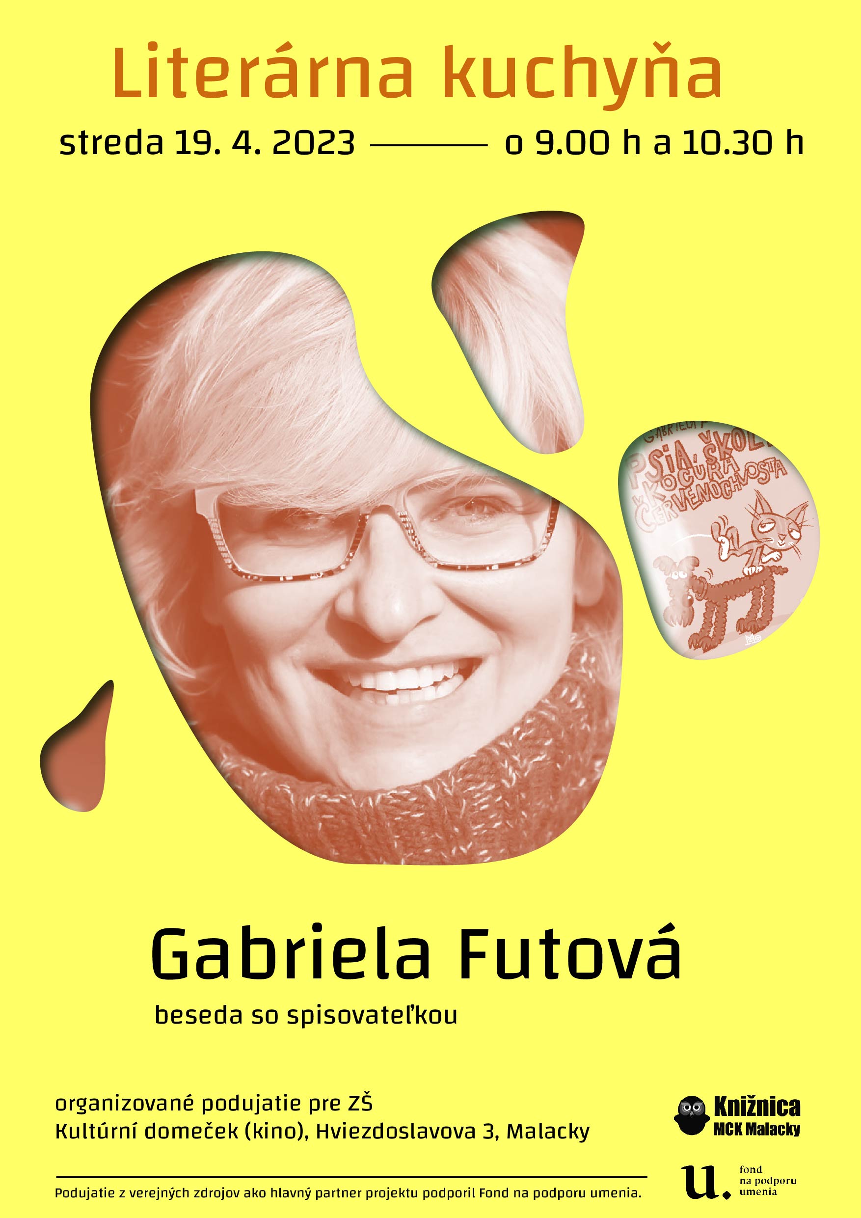 Knižnica MCK Malacky v Literárnej kuchyni namieša tretiu výchovno-vzdelávaciu kašu, ktorá podporuje čitateľskú gramotnosť, čiže trávenie kníh u detí a mládeže a ich záujem o literatúru. Pripravili sme pre žiakov organizované stretnutie s najlepšou spisovateľkou pre deti a mládež Gabrielou Futovou, ktorá v roku 2019 získala ocenenie Panta Rhei Awards za Slovenská detská knihu roka 2019 - Čo učky nevidia. Aj o tejto knihe sa budeme rozprávať v našej Literárnej kuchyni.