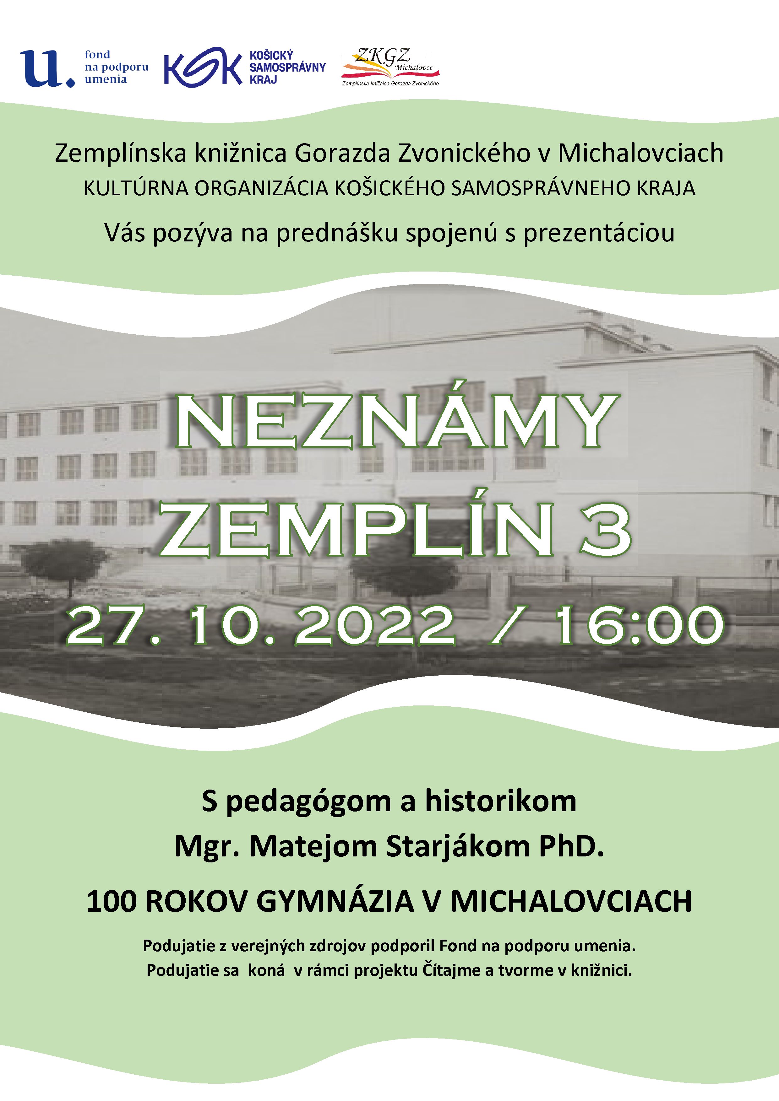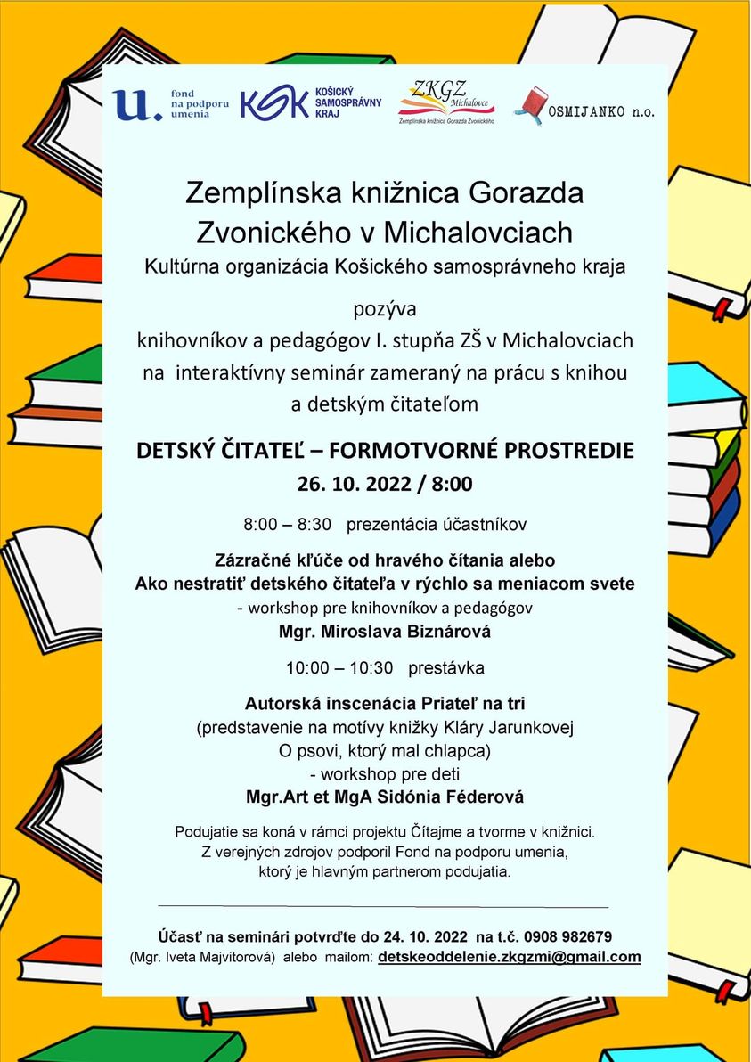 Hornozemplínska knižnica a Prešovský samosprávny kraj Vás pozývajú na Odborný seminár spojený so slávnostným vyhodnotením výsledkov regionálnej súťaže.