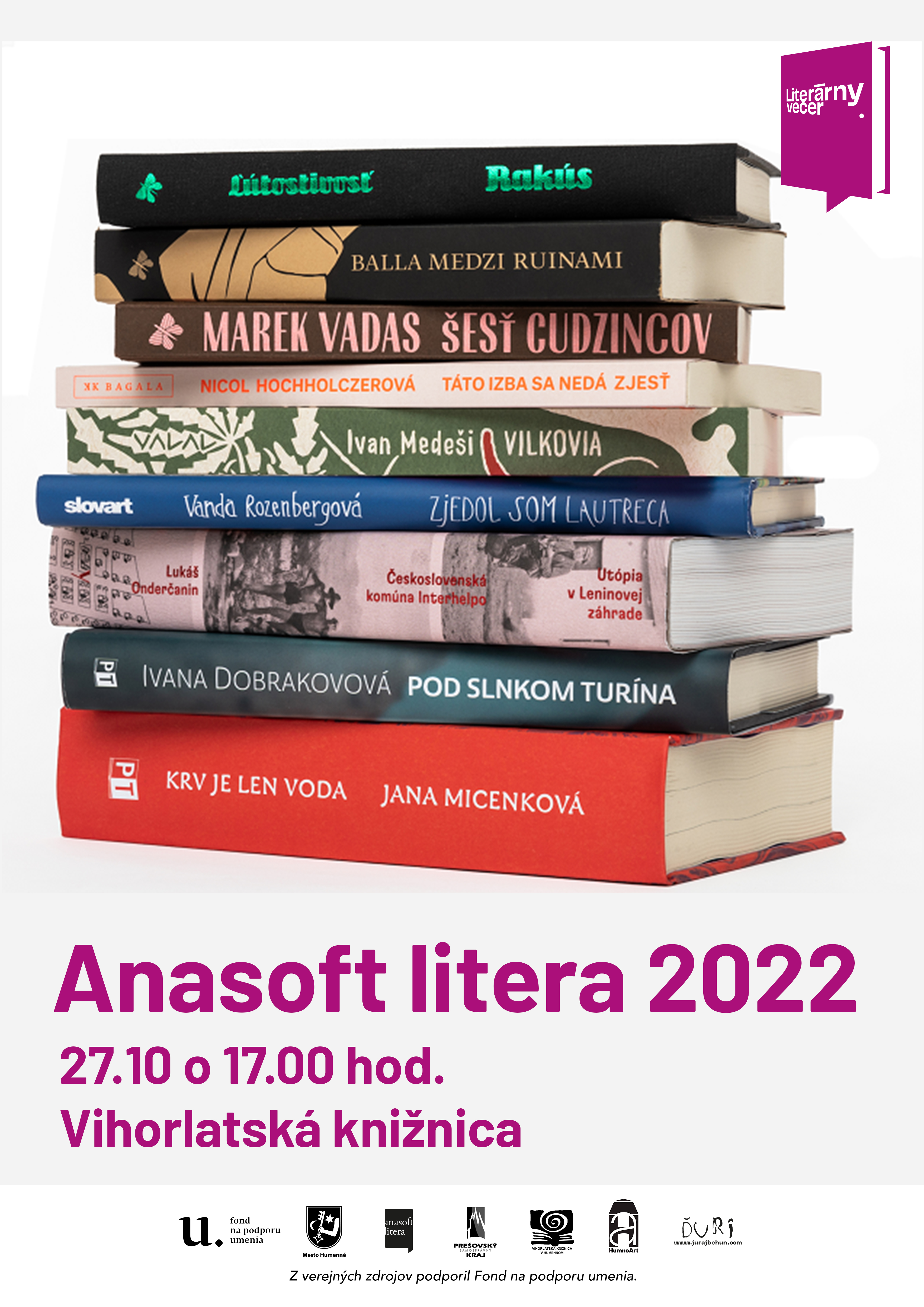 Literárny večer: Anasoft litera 2022, debata o aktuálnej pätici nominovaných kníh