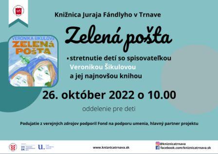 V rámci cyklu Kniha a ešte trochu viac sa deti stretnú so spisovateľkou Veronikou Šikulovou a jej najnovšou knihou Zelená pošta.
