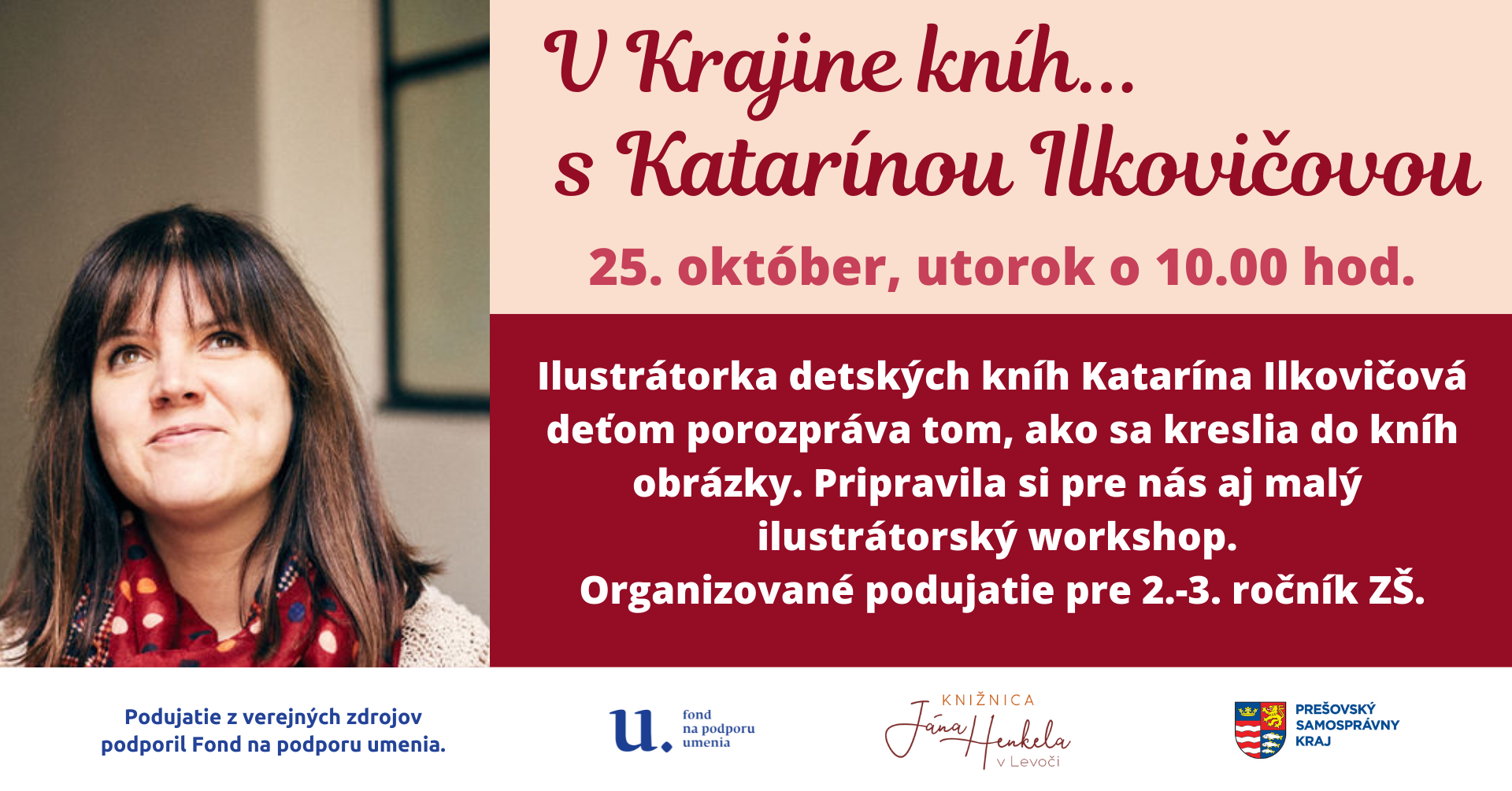 V rámci projektu Krajina kníh si do knižnice pozývame na besedy autorov a ilustrátorov detských kníh. V októbri nás navštívi ilustrátorka Katarína Ilkovičová, ktorá deťom porozpráva o tom, ako sa do kníh kreslia ilustrácie. Pre deti si pripravila aj zaujímavý ilustrátorský workshop.