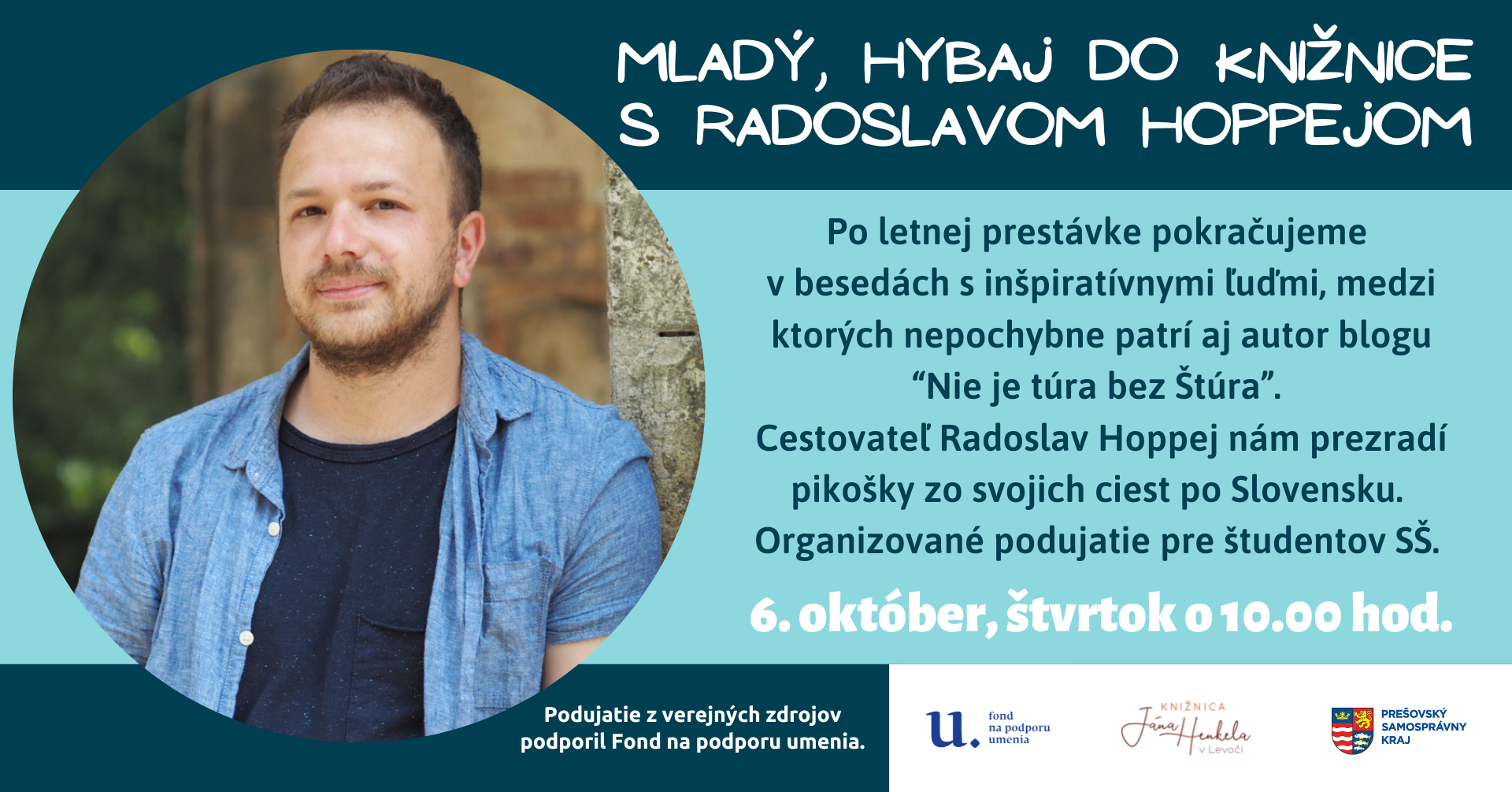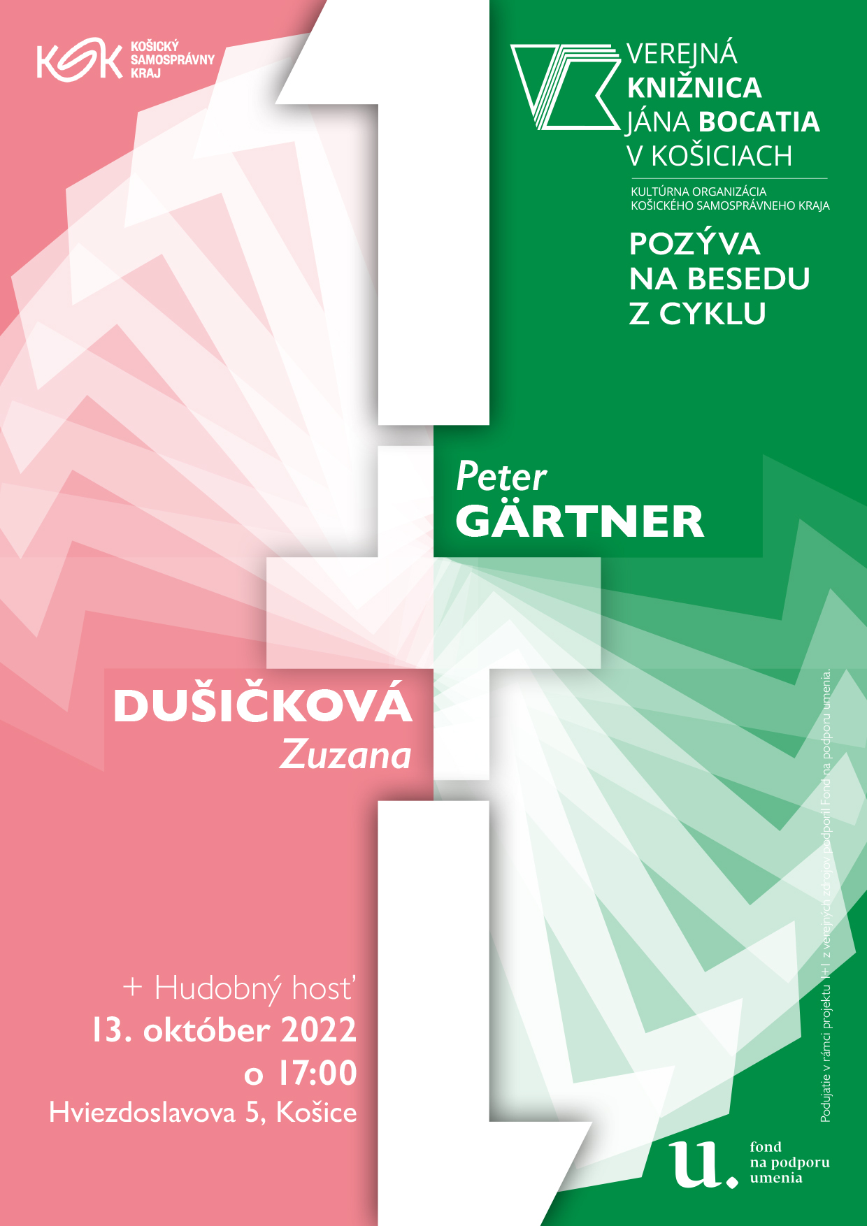 Verejná knižnica Jána Bocatia v Košiciach pozýva na októbrové podujatie z cyklu besied 1+1. Vo štvrtok 13. októbra o 17:00 v centrálnej knižnici na Hviezdoslavovej ul. 5 privítame spisovateľa, dramatika a scenáristu Petra Gärtnera, spoluautora komiksového príbehu o Lasicovi a Satinskom Radostná správa. Našou druhou hostkou bude vydavateľka a autorka knihy pre deti Timo a hviezdna obloha Zuzana Dušičková. Večerom bude hudobne sprevádzať Monika Jeňová.