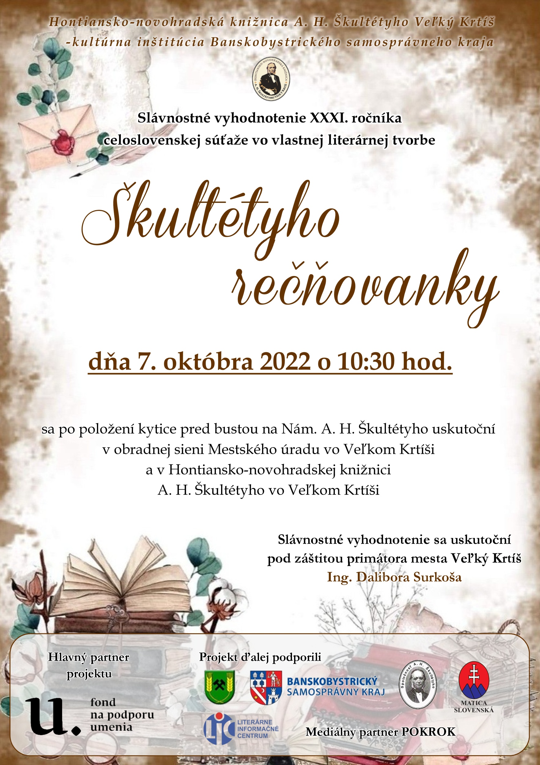 Slávnostné vyhodnotenie 31. ročníka celoslovenskej súťaže vo vlastnej literárnej tvorbe žiakov základných a stredných škôl Škultétyho rečňovanky