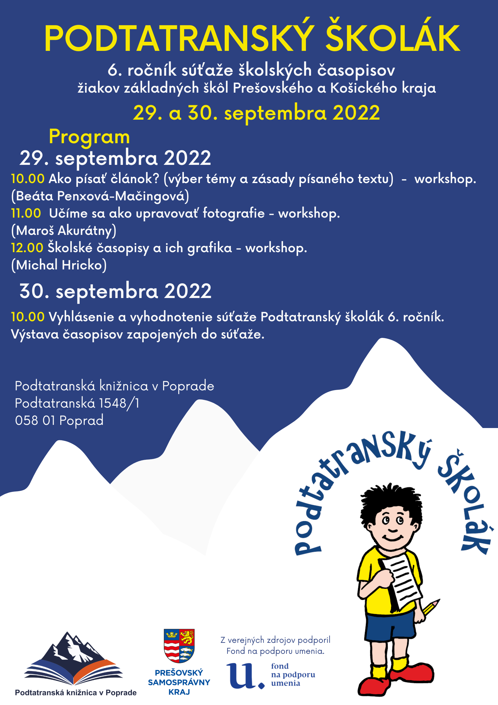 Podtatranský školák 6. ročník, súťaž školských časopisov základných škôl Prešovského a Košického kraja. Cieľom súťaže je podporiť a podchytiť začínajúce školské časopisy a zvýšiť odbornú úroveň už vydávaných časopisov. Súťaž prebieha pod odbornou garanciou novinárov a redaktorov, ktorí sa denne zaoberajú touto činnosťou.