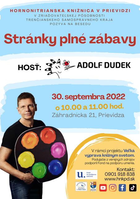 Cieľom projektu je vydať sa na výpravu knižným svetom a nadchnúť pre literatúru a tvorivosť čitateľov od najmenších až po dospelých. Do originálnej mapy knižného sveta aktívne prispeje v posledný septembrový deň aj ilustrátor Adolf Dudek. Podarí sa mu presvedčiť žiakov, že čítanie môže byť zábava?