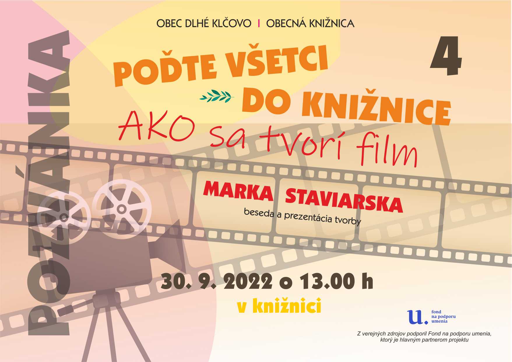 Beseda, v ktorej autorka predstaví svoju tvorbu a diskusia spojená s prezentáciou o tvorbe filmu.