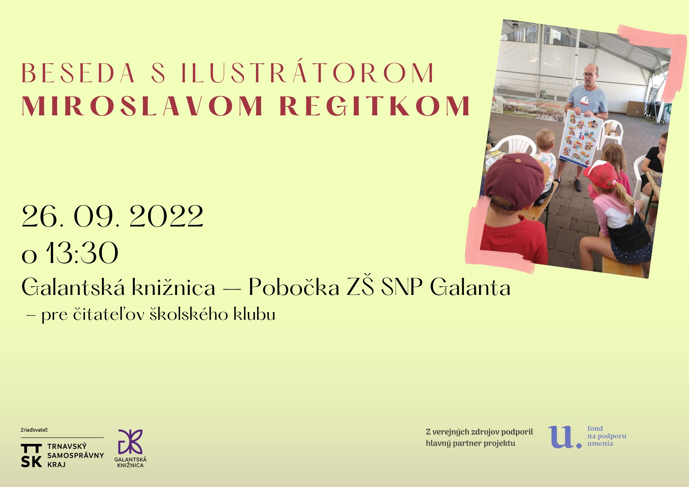 Každý z nás si pri čítaní dozaista predstavuje postavy, miesta, prostredie, a to všetko úplne po svojom. Tí obdarenejší z nás dokážu tieto predstavy pretaviť do krásnych malieb, kresieb, ilustrácií. Jedným z takýchto šikovných ľudí je aj ilustrátor Miroslav Regitko, ktorý poctí našu knižnicu svojou návštevou už onedlho, 4.10.2022.