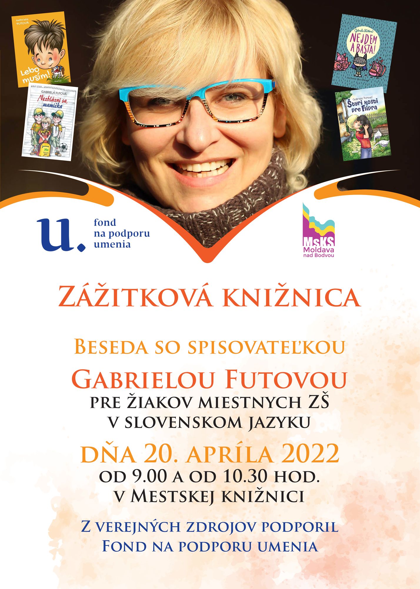 Stretnutie detí s obľúbenou spisovateľkou Gabrielou Futovou. Podujatie sa koná v rámci cyklu Kniha a ešte trochu viac.