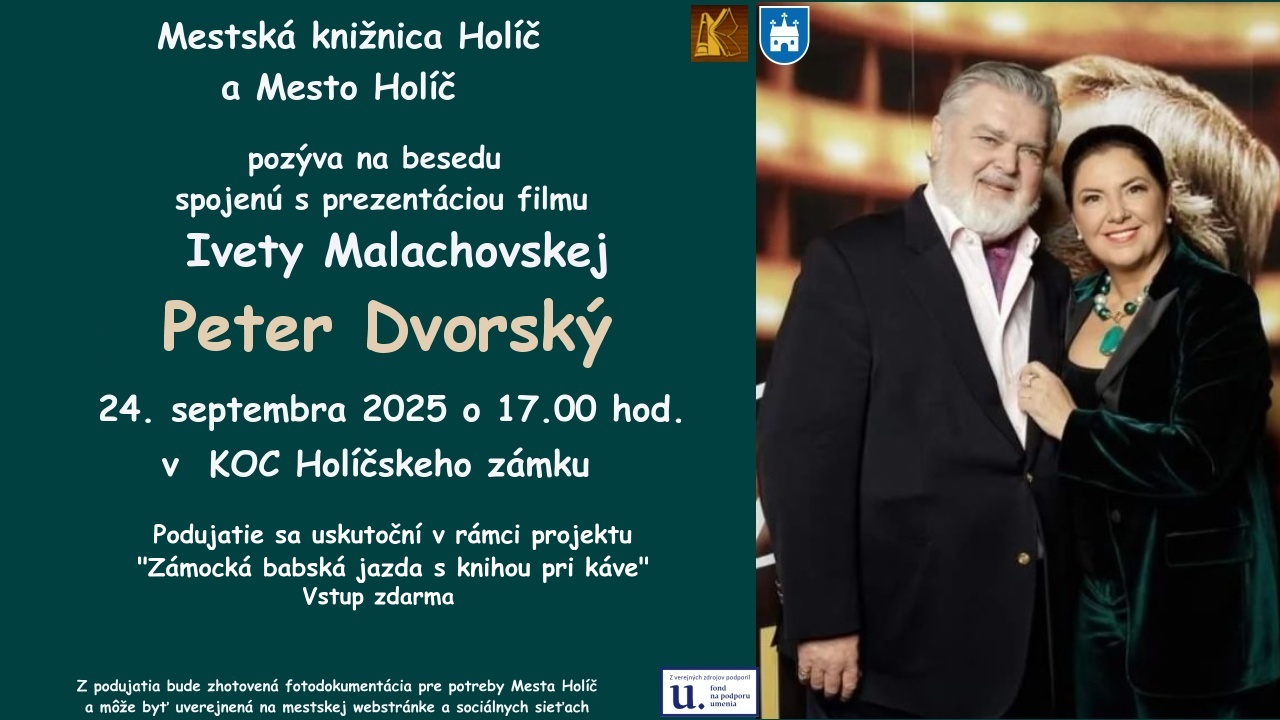 Beseda spojená s prezentáciou filmu Ivety Malachovskej a Petra Dvorského. Film Peter Dvorský o legende slovenskej opery je režisérskou prvotinou moderátorky Ivety Malachovskej. Biografický dokument zachytáva život a kariéru svetoznámeho umelca, opernej hviezdy a miláčika publika - umelca, ktorý nikdy nezabudol, odkiaľ pochádza.