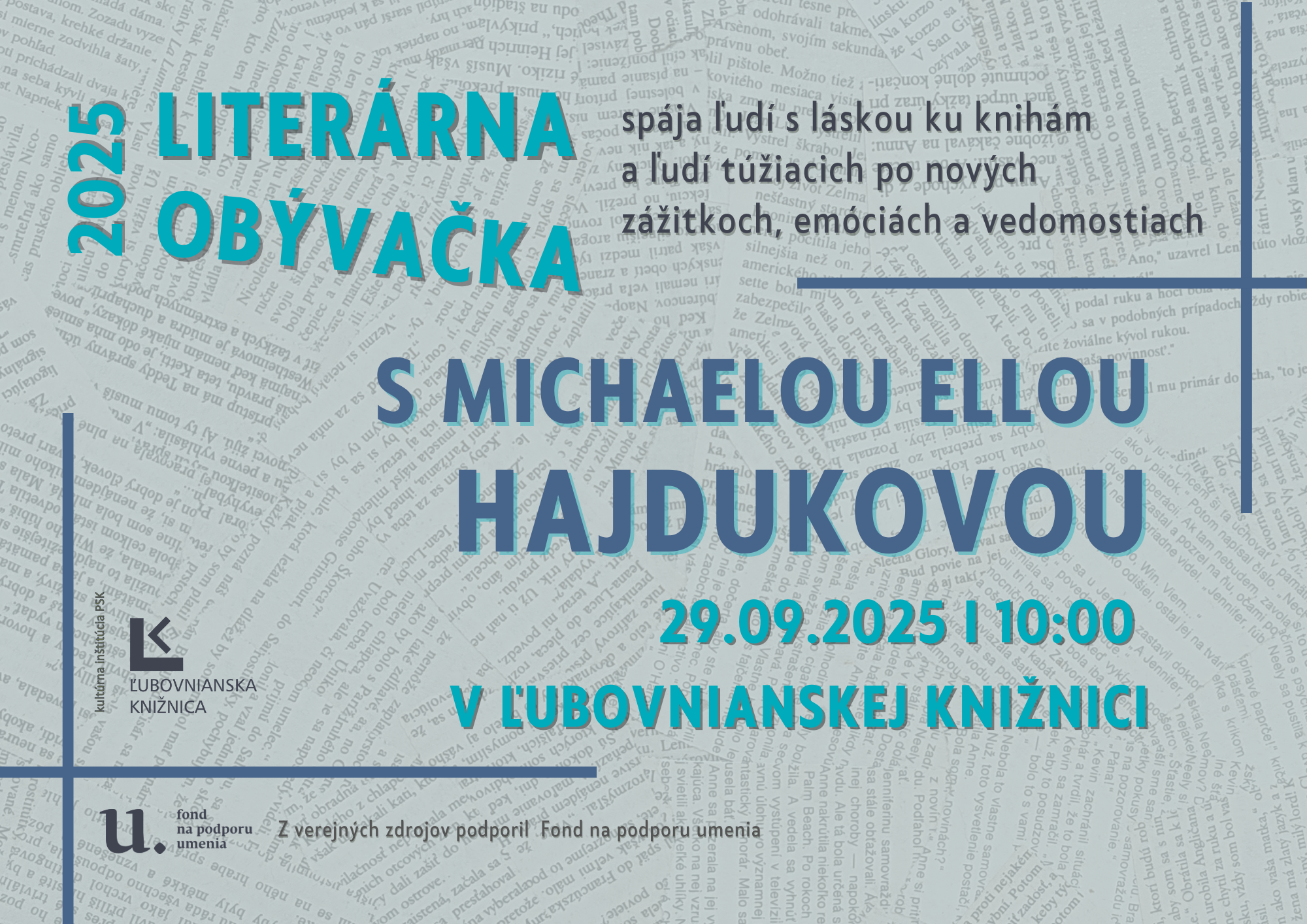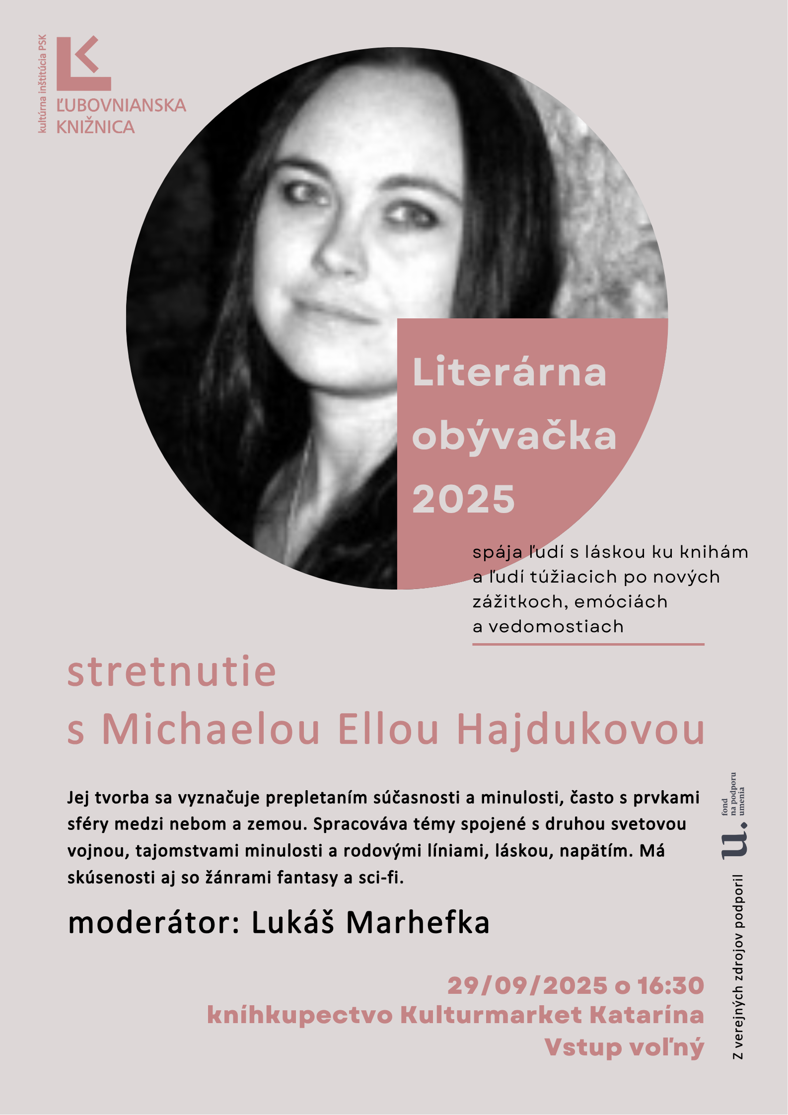 Beseda s Michaelou Ellou Hajdukovou, jednou z najpredávanejších súčasných slovenských autoriek, sa uskutoční dňa 29.9.2025 o 16:30. Michaela nám príde porozprávať o tom, ako sa jej podarilo získať si priazeň a záujem toľkých čitateliek, kde čerpá inšpirácie na nové príbehy a možno aj tom, aký literárny sen by si rada ešte splnila.