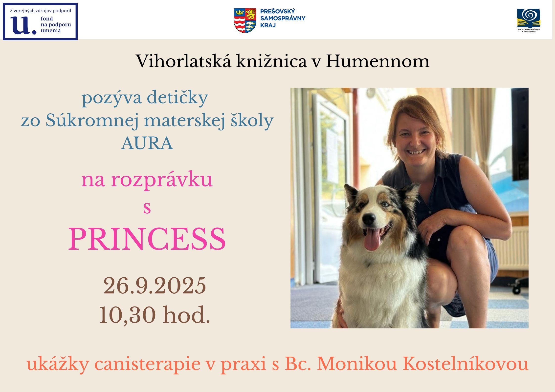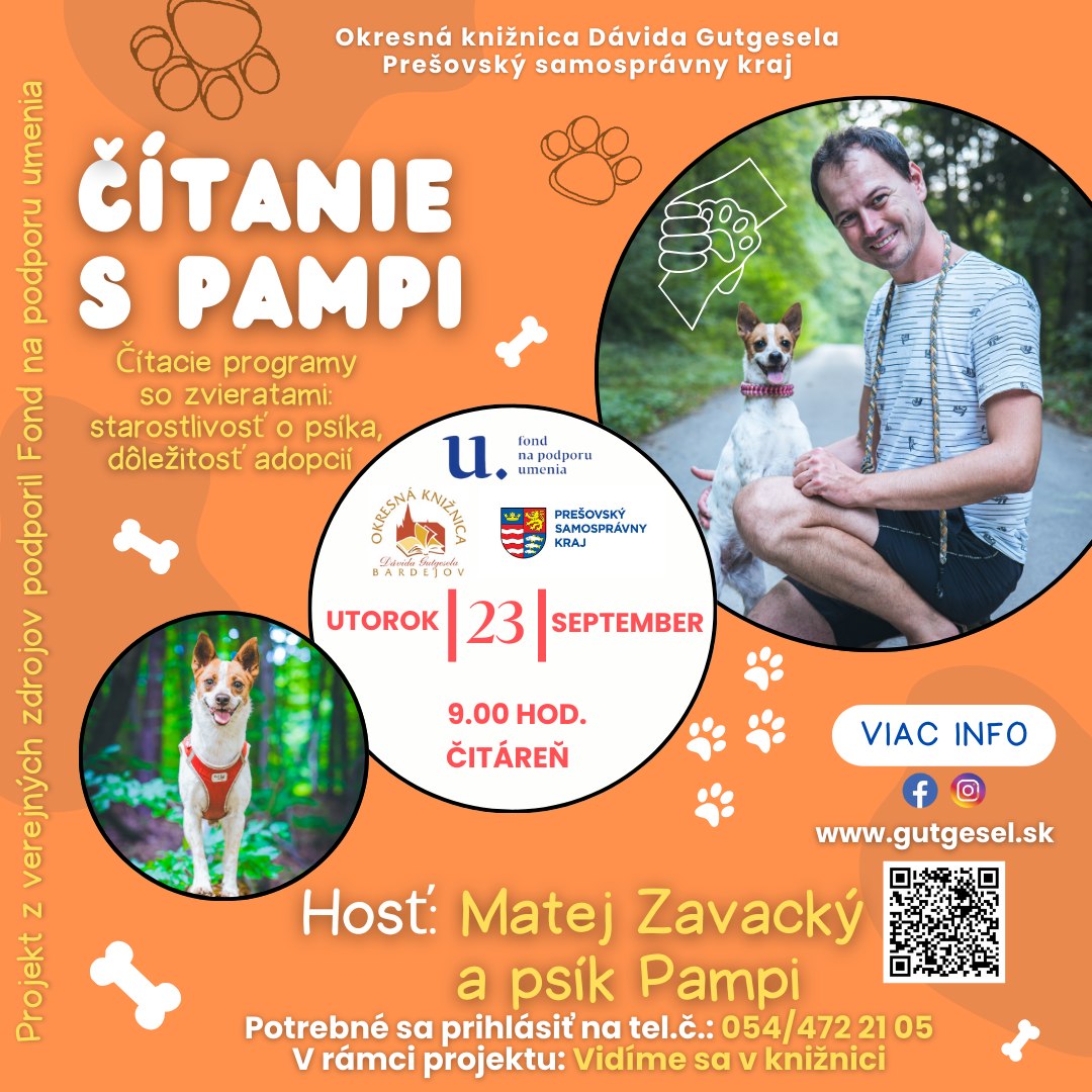 Čítacie programy so zvieratami: starostlivosť o psíka, dôležitosť adopcií a čítanie z knihy s hosťom Matejom Zavackým a psíkom Pampi.
