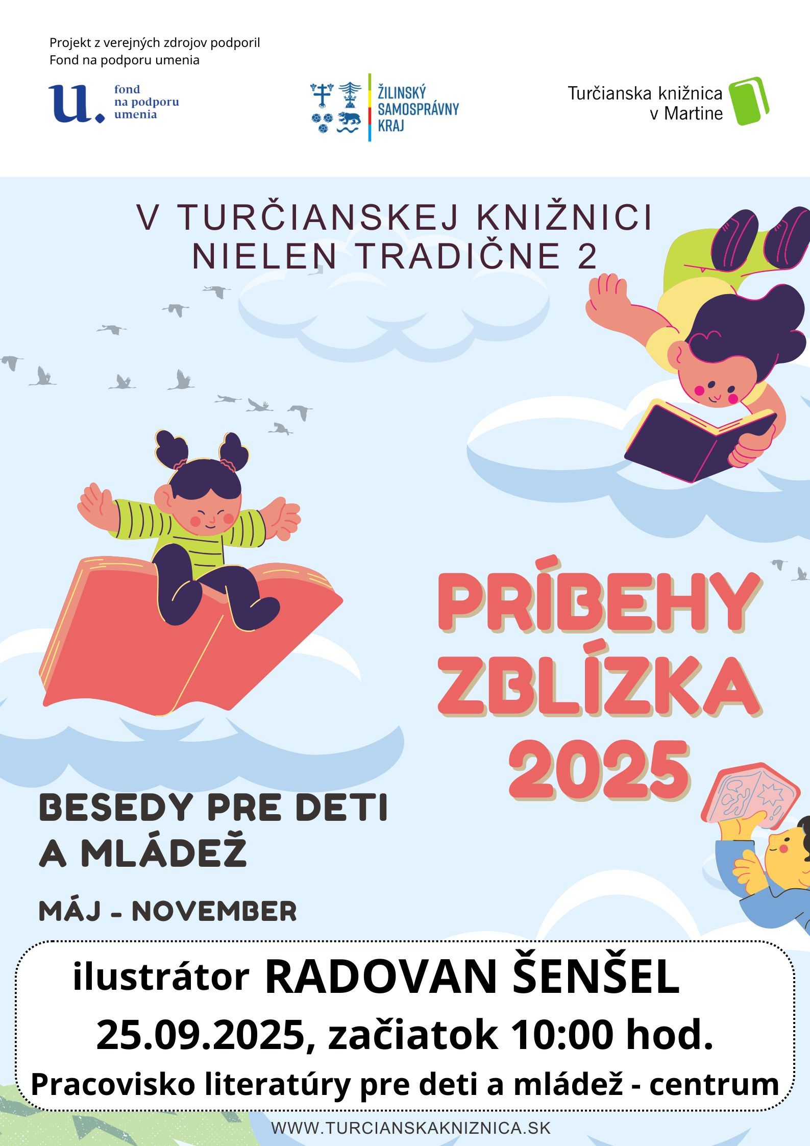 V rámci projektu „V Turčianskej knižnici nielen tradične 2 – Príbehy zblízka 2025“, privítame dňa 25.09.2025 o 10:00 hod., v Turčianskej knižnici na pracovisku literatúry pre deti a mládež ilustrátora Radovana Šenšela, ktorý sa naplno venuje umeleckej sfére, hlavne maľbe a kresbe. Je autorom kníh pre deti O vlkovi z vane a O vlkovi bez vane, v ktorých si hlavná postava hľadá svoje miesto vo svete a pritom spoznáva svoje silné stránky.