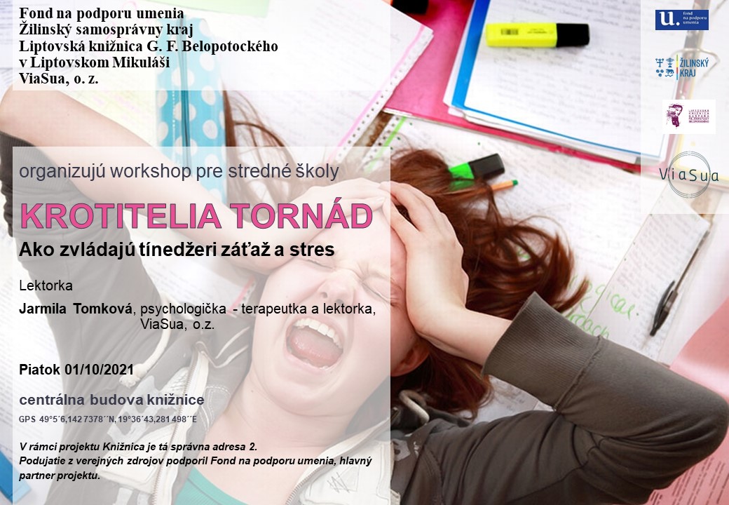 Krotitelia tornád. Ako zvládajú záťaž a stres tínedžeri. Workshop pre študentov stredných škôl. 1.10.2021.