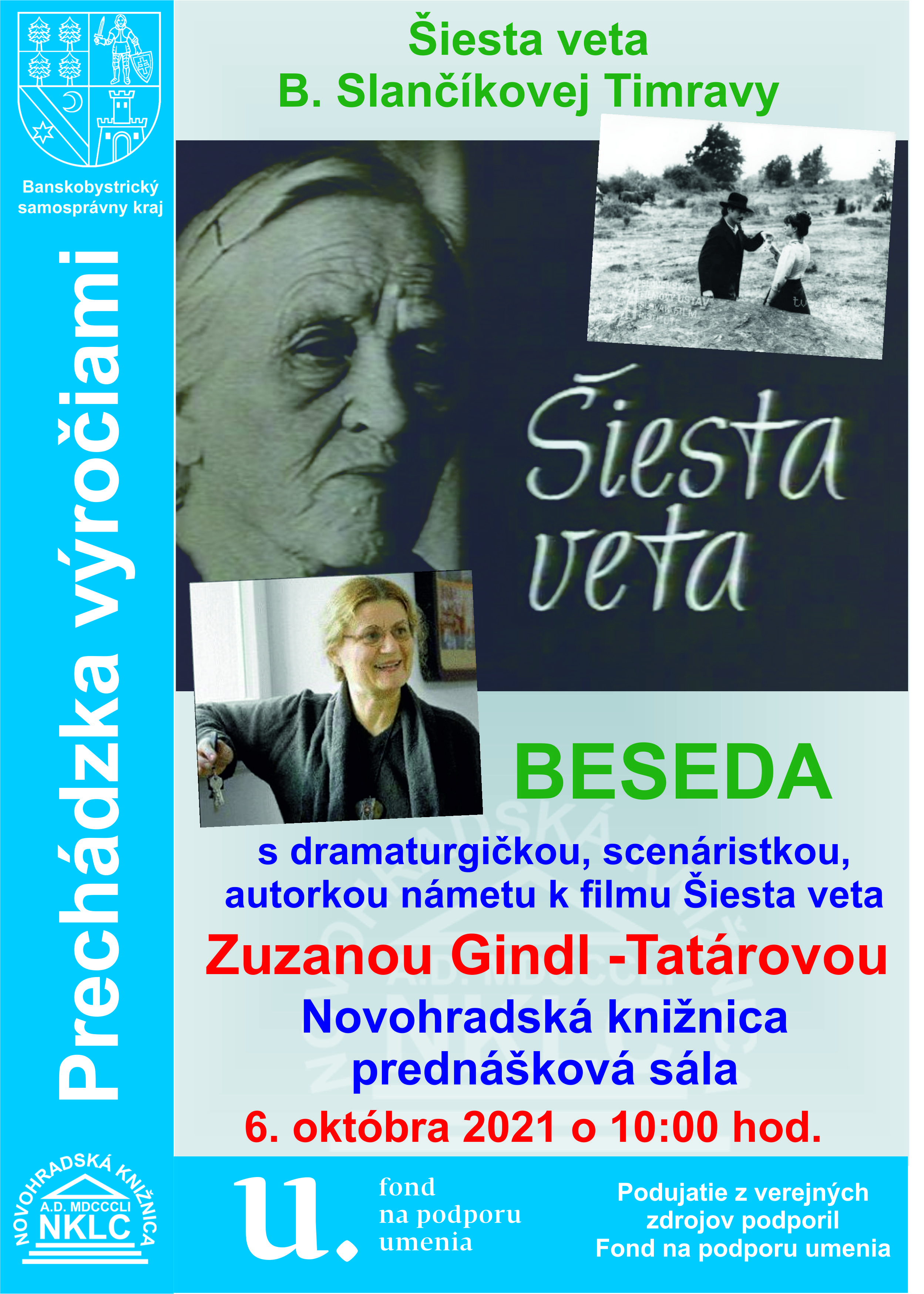 Beseda s dramaturgičkou a scenáristkou, autorkou námetu k filmu Šiesta veta, Zuzanou Gindl-Tatárovou pri príležitosti 70. výročia úmrtia slávnej spisovateľky.