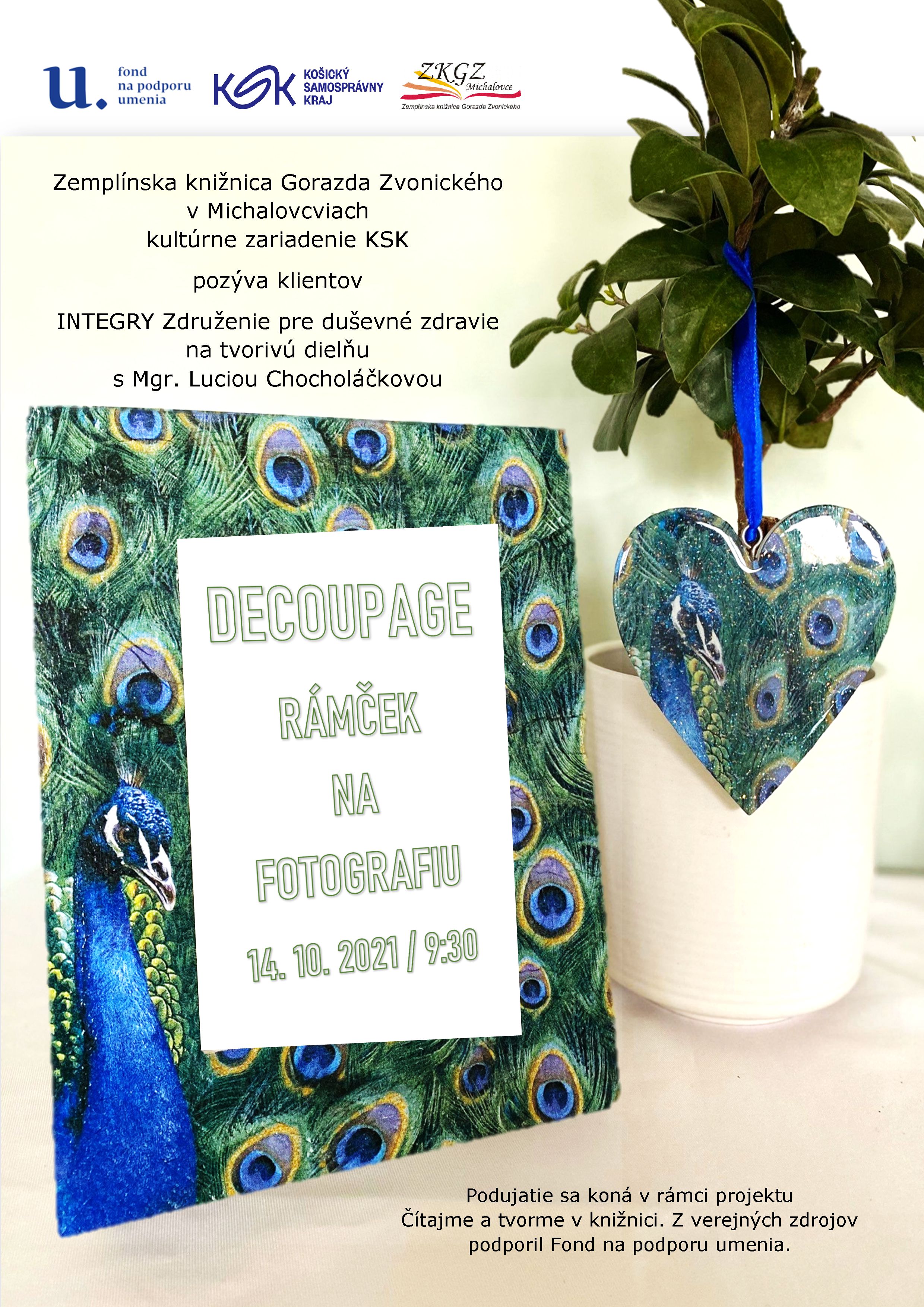 Tvorivá dielňa pre klientov DSS Integra. Pod lektorským vedením klienti zariadenia Integra sa oboznámia s technikou zdobenia a fotorámček upravia podľa vlastných predstáv a inšpirácii.