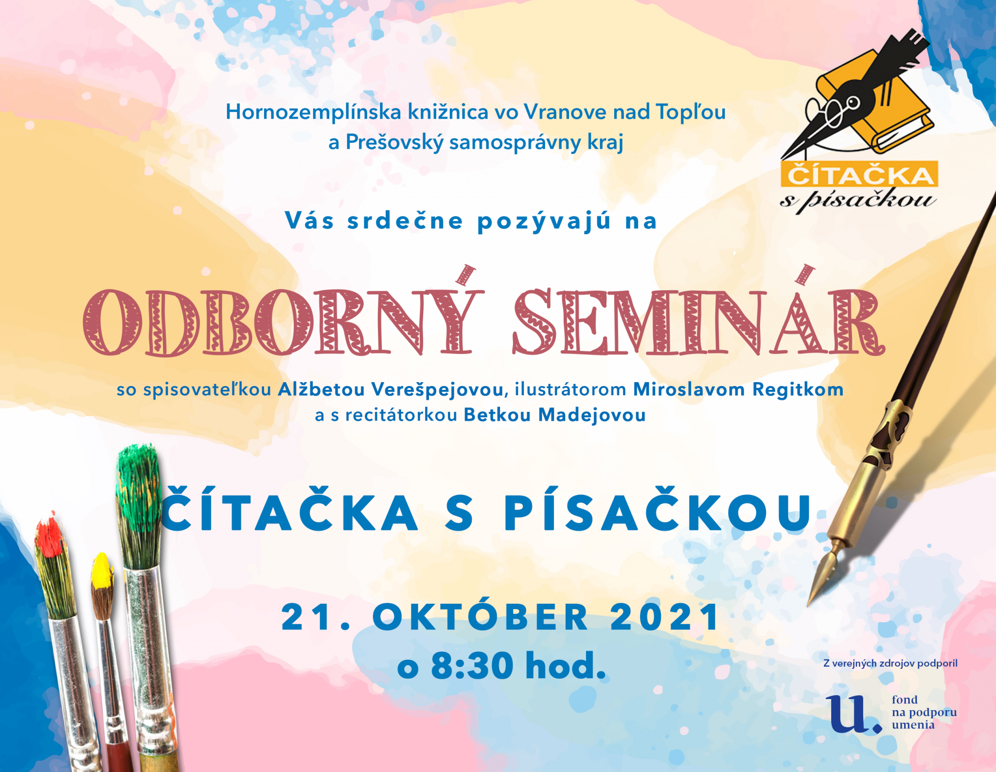 Hornozemplínska knižnica a Prešovský samosprávny kraj Vás pozývajú na Odborný seminár spojený so slávnostným vyhodnotením regionálnej