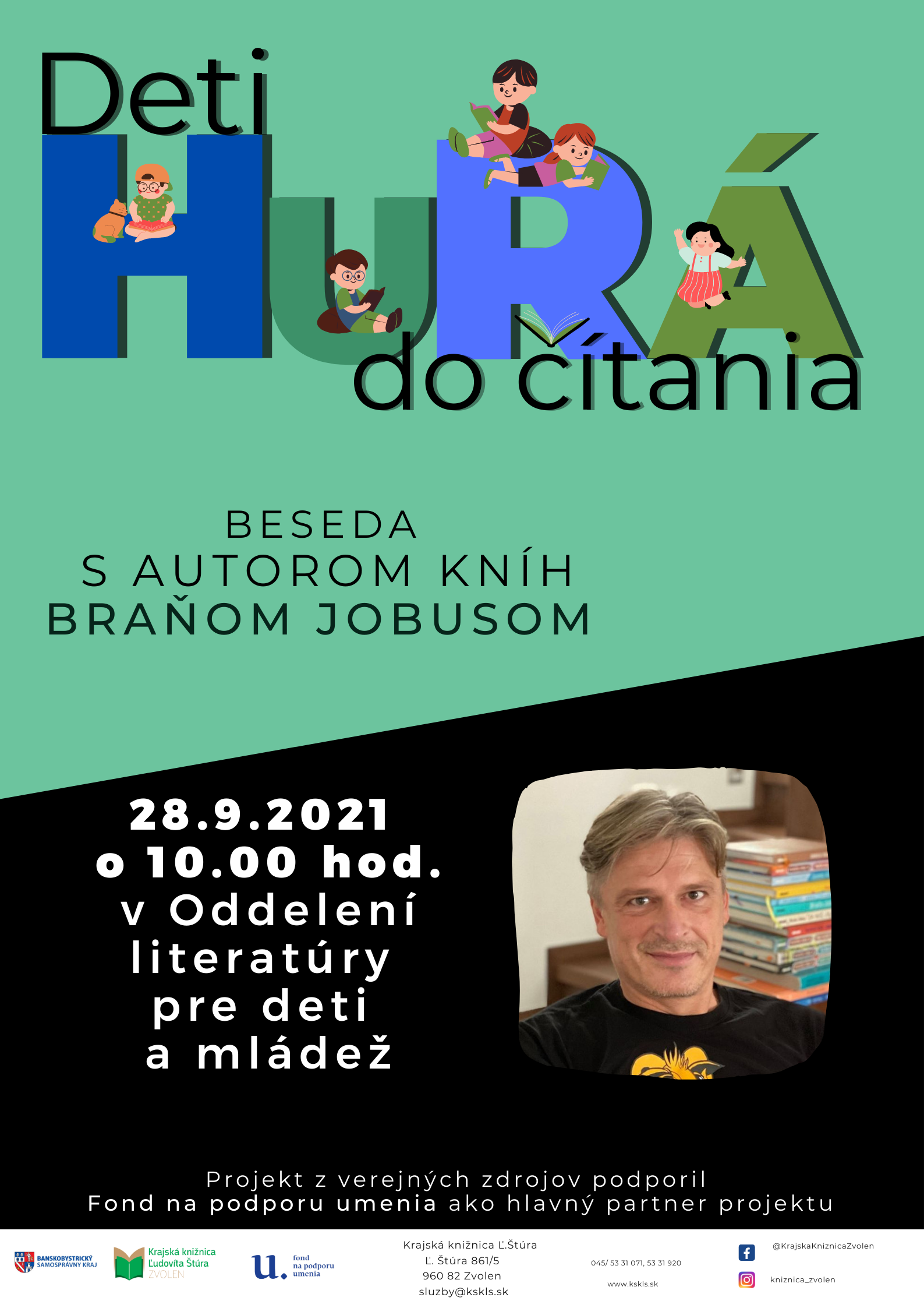 Beseda určená žiakom základných škôl, v ktorej sa stretnú a budú besedovať s obľúbeným multižánristom Branislavom Jobusom.