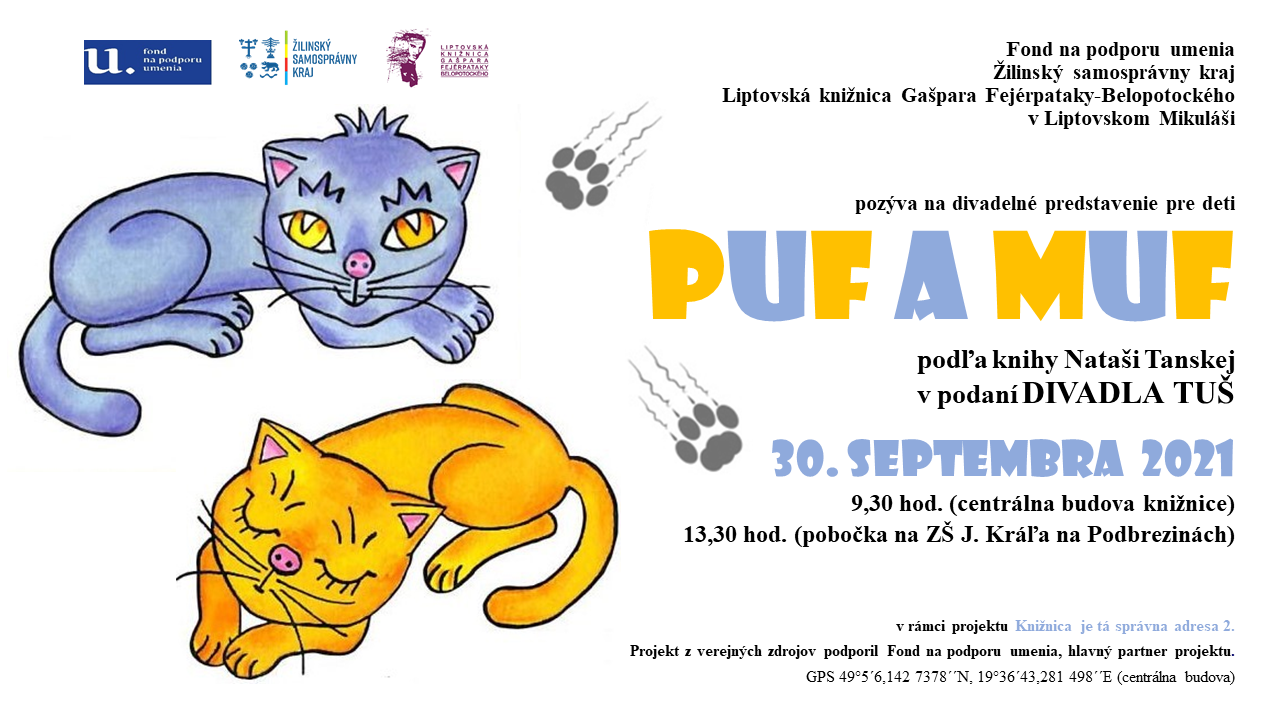 Puf a Muf. Bábkové divadelné predstavenie. 30.9.2021 o 9,30 a 13,30.