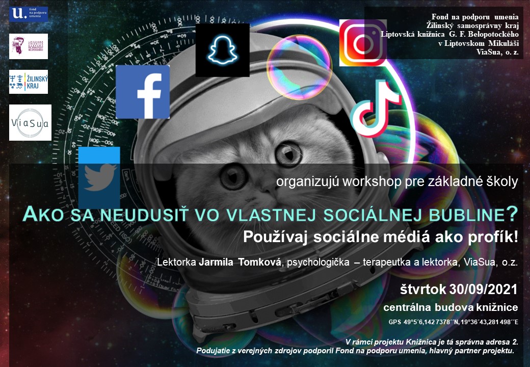 Ako sa neudusiť vo vlastnej sociálnej bubline? Používaj sociálne médiá ako profík! Workshop pre žiakov základných škôl. 30.9.2021.