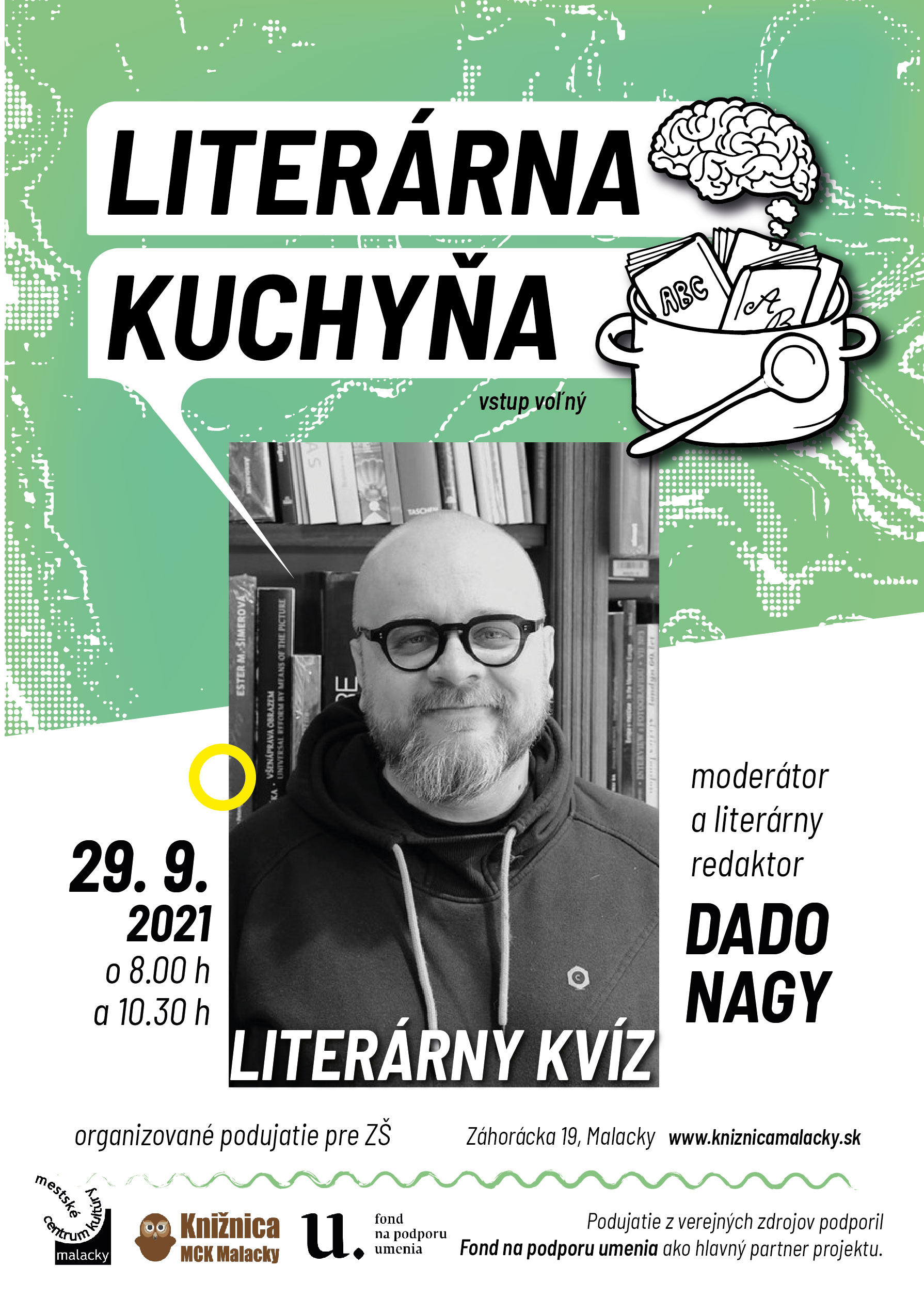 Knižnica MCK Malacky v Literárnej kuchyni namiešala druhú jesennú výchovno-vzdelávaciu kašu, ktorá podporuje čitateľskú gramotnosť, čiže trávenie kníh u detí a mládeže a ich záujem o literatúru. Pripravili sme pre žiakov organizované stretnutie s Dadom Nagyom. Vedomosti o knihách si žiaci môžu otestovať priamo s promotérom dobrej literatúry. Nemusia mať všetko prečítané, aby uspeli, určite sa však o knihách veľa dozvedia