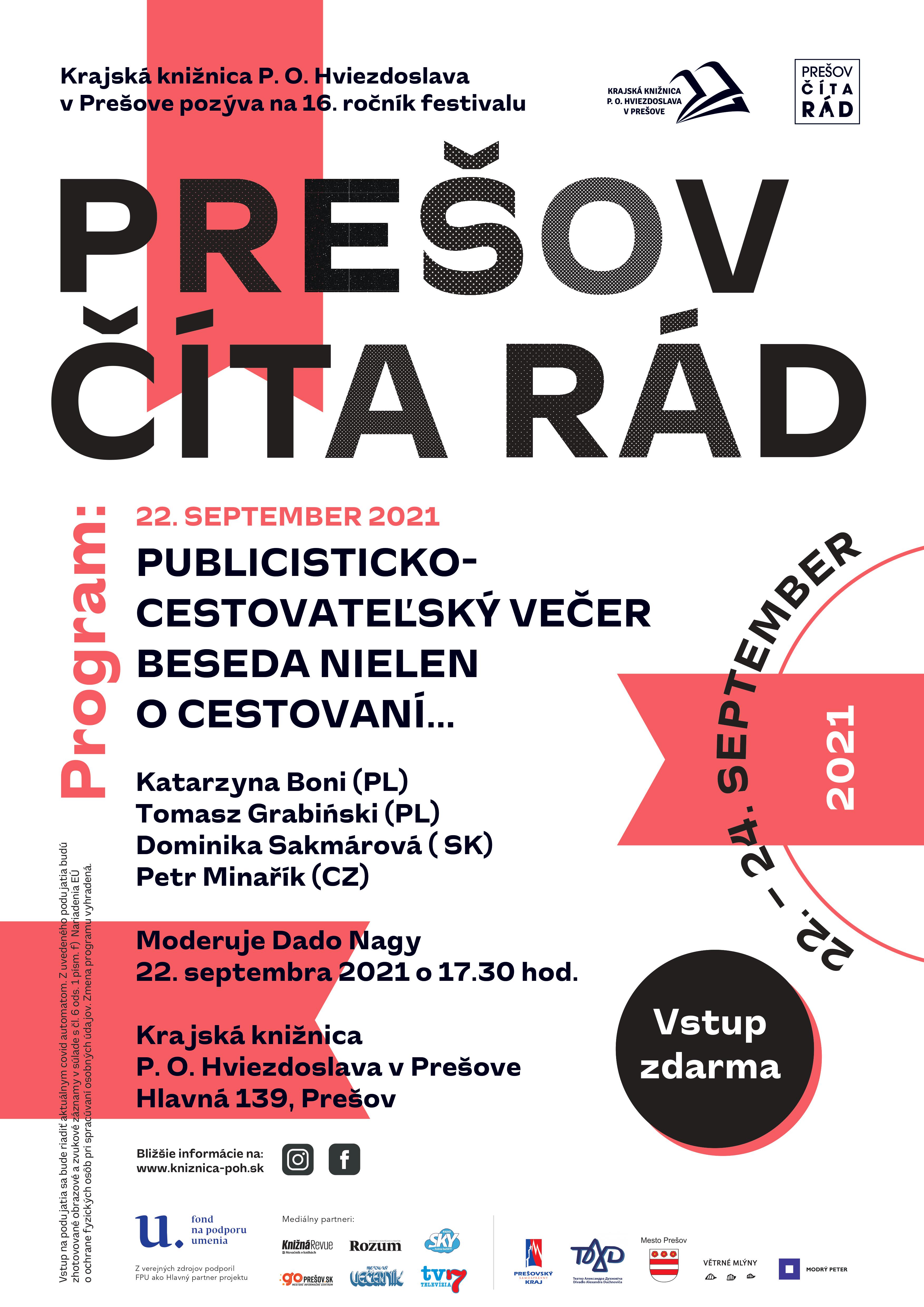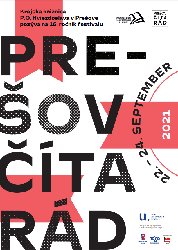 Krajská knižnica P. O. Hviezdoslava v Prešove Vás srdečne pozýva na 16. ročník literárneho festivalu Prešov číta rád, ktorý sa uskutoční 22. – 24. septembra 2021.