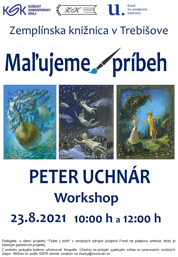 23.8.2021 o 10:00 h. a o 12:00 h. workshop s ilustrátorom pre deti Workshop Petra Uchnára bude možnosťou pre deti preniesť ich fantáziu na papier tak, ako ju prenáša ilustrátor do svojich kresieb, ktoré tvorí použitím rôznych výtvarných techník.