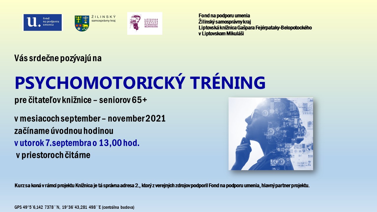 Psychomotorické tréningy pre čitateľov - seniorov. September – november 2021.