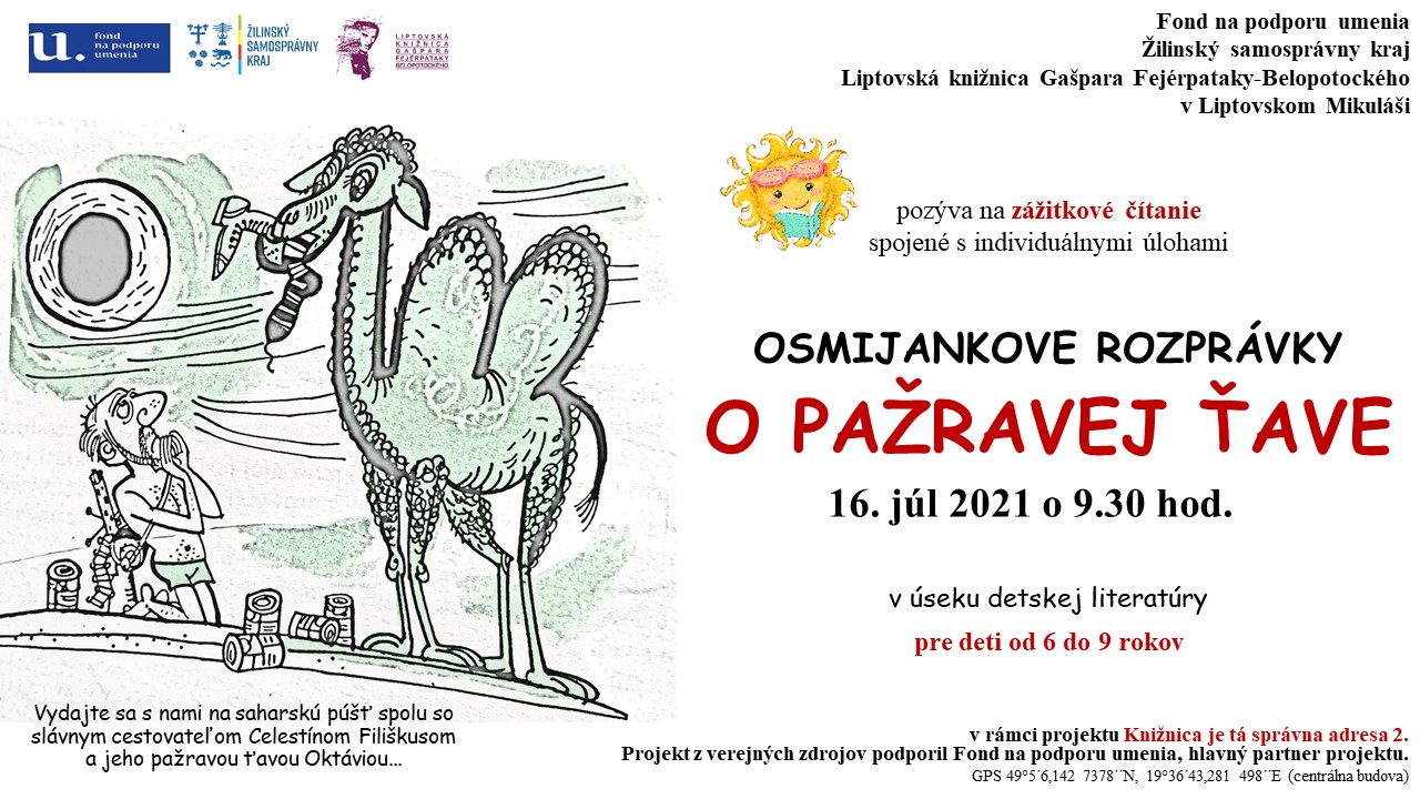 Sprievodné podujatie projektu - výstava ilustrácií Petra Uchnára. Peter Uchnár je autor s detskými očami a detskou dušou, obdarený jemným humorom, láskavým pohľadom na svet a intelektuálnym rozhľadom.
