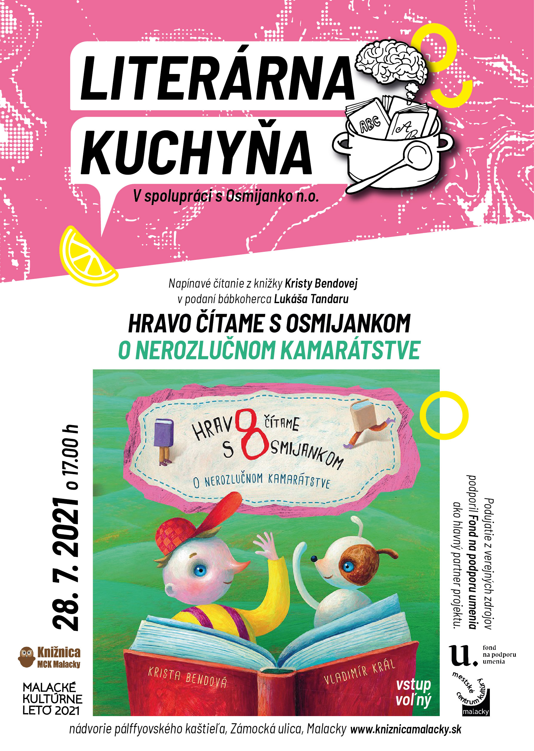 Knižnica MCK Malacky opäť v stredu 28.7. o 17.00 h v Literárnej kuchyni namieša ďalšiu kašu a tentoraz pre menších čitateľov, ktorý majú radi dobrodružstvo. S Osmijankom si hravo prečítame a dozvieme sa niečo o nerozlučnom kamarátstve. Čítanie z knižky Kristy Bendovej v podaní bábkoherca Lukáša Tandaru.