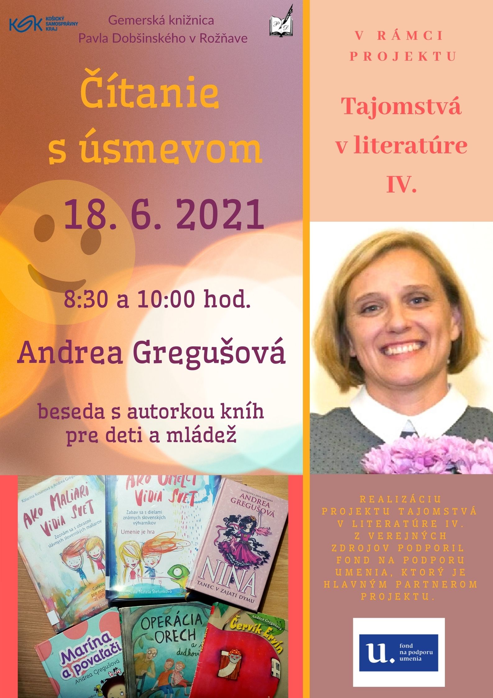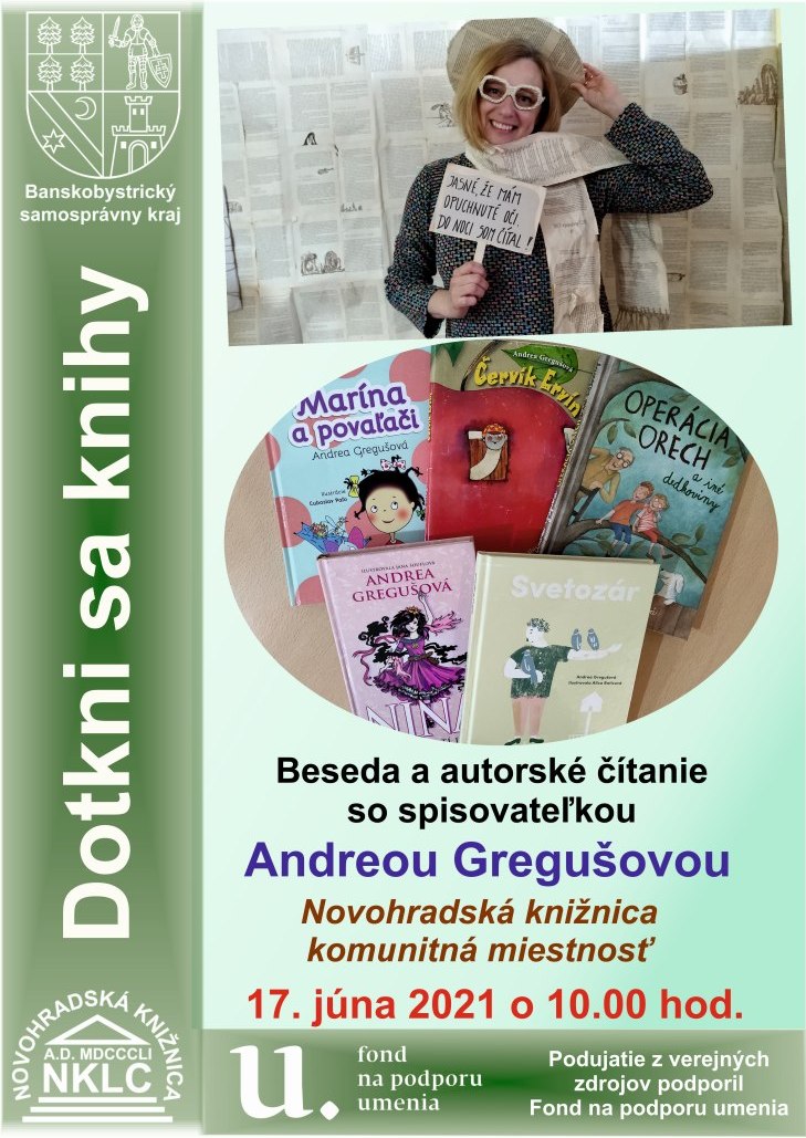 Beseda so spisovateľkou Andreou Gregušovou spojená s autorským čítaním, predstavenie tvorby a najnovšej knihy