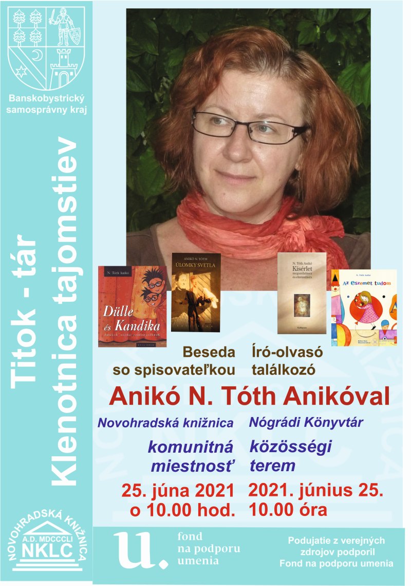 Beseda a autorské čítanie so spisovateľkou, ktorá píše v maďarčine, priblíženie tvorby a predstavenie najnovšej knihy
