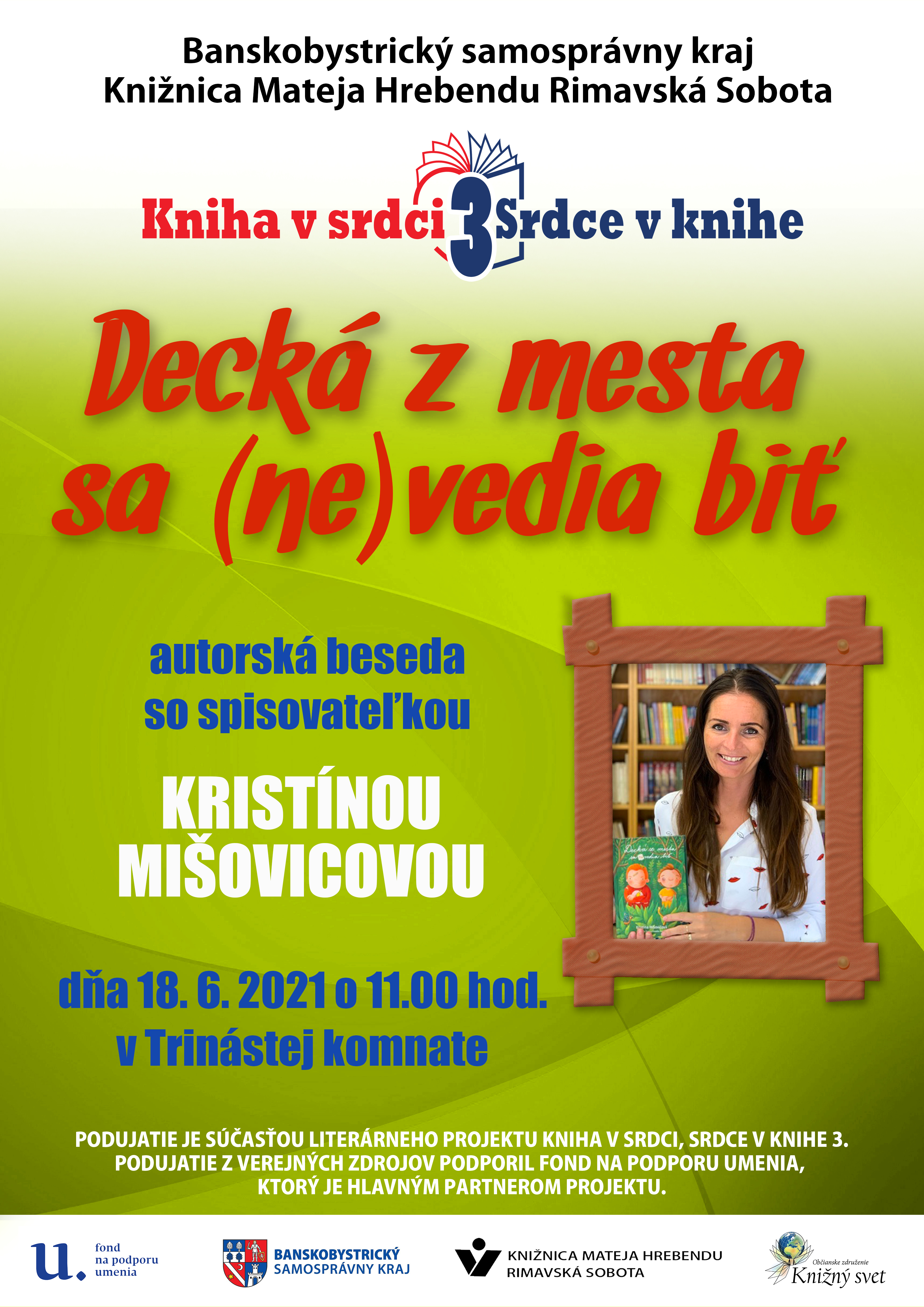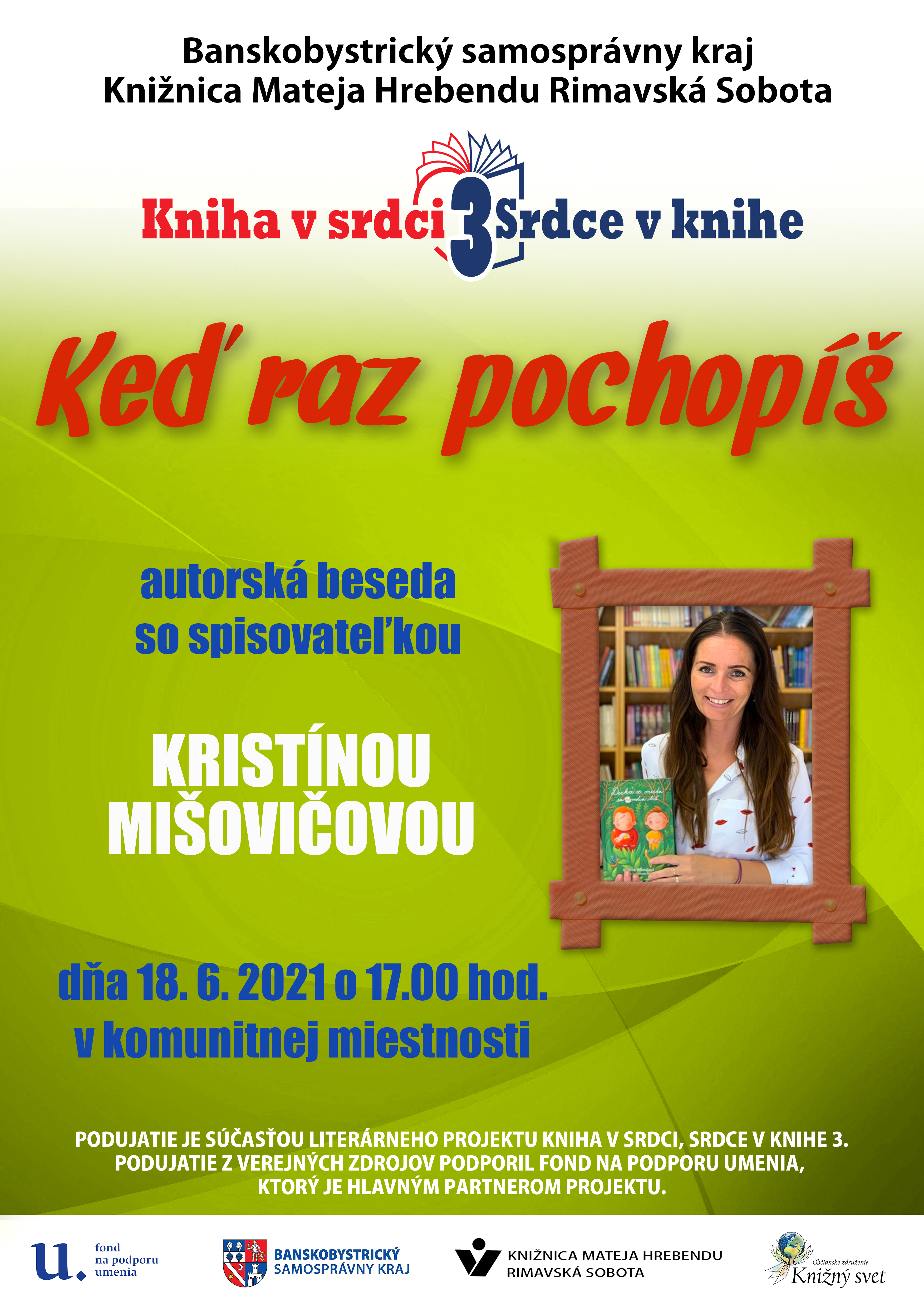 Autorská beseda so spisovateľkou Kristínou Mišovičovou dňa 18. 6. 2021 pre širokú čitateľskú verejnosť.