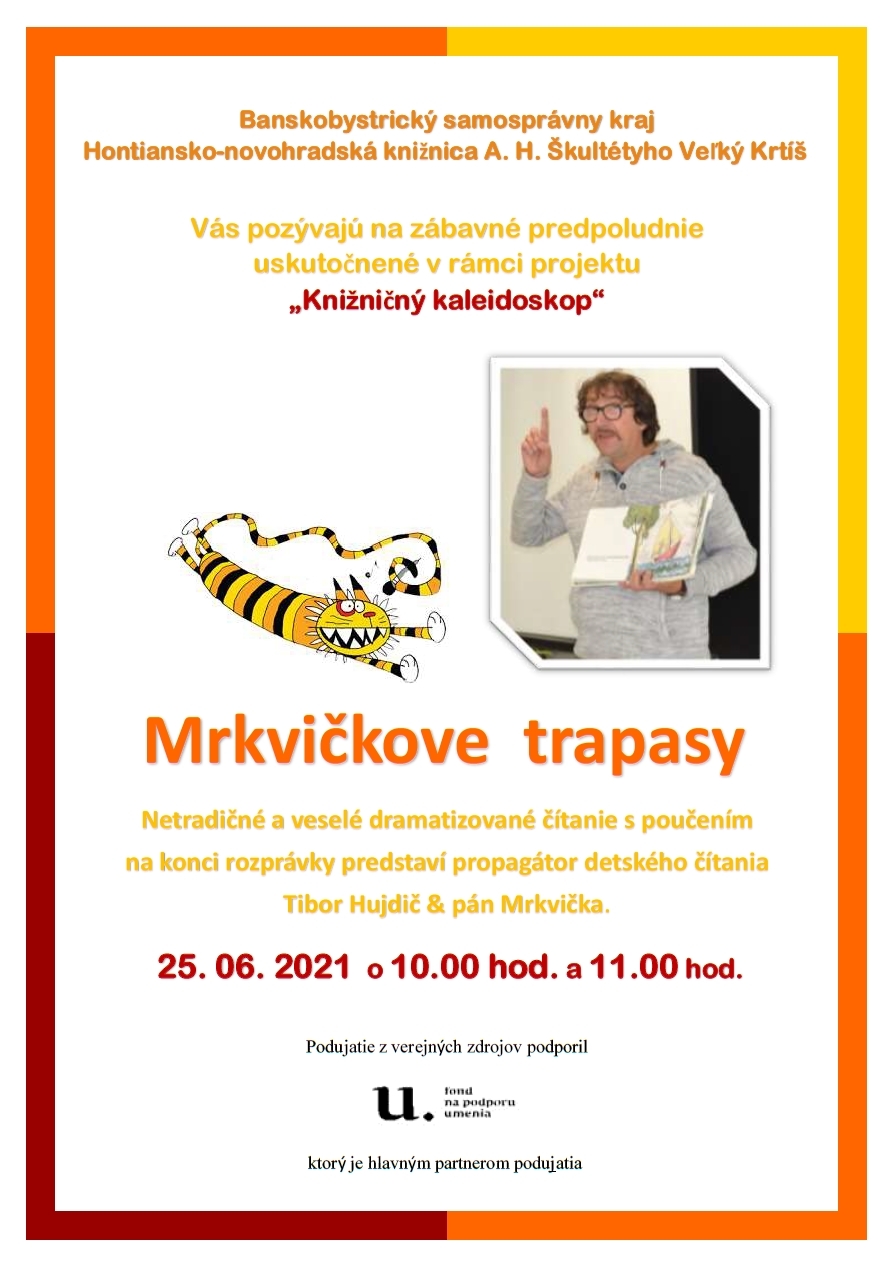 Netradičné a zábavné dramatizované čítanie s poučením na konci rozprávky predstaví žiakom ZŠ známy propagátor detského čítania Tibor Hujdič alias pán Mrkvička. Jeho dramatizované čítania sú motiváciu pre deti, ktoré neradi čítajú.