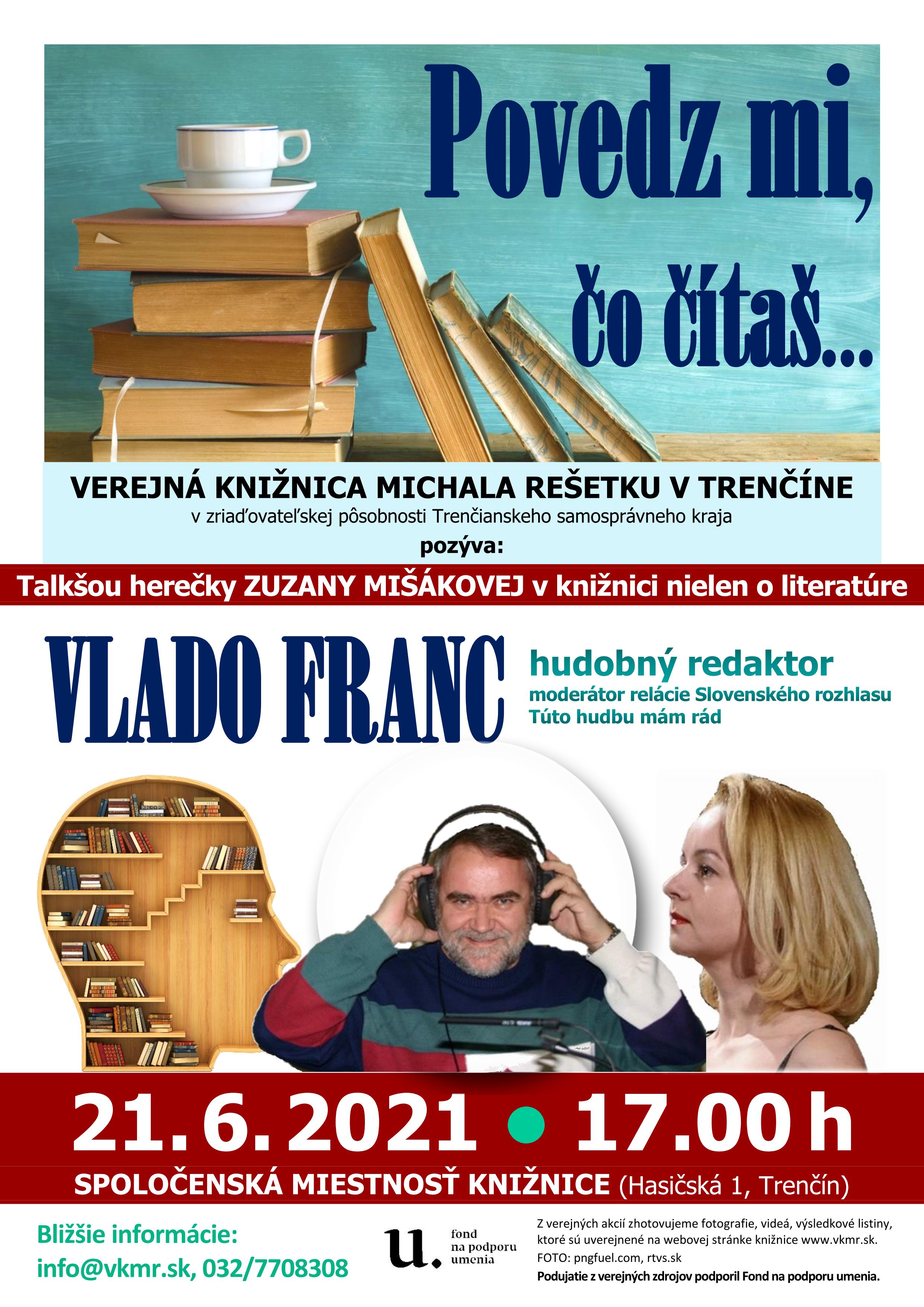 Cyklus talkšou, kde predstavujeme osobnosti rôznych profesií a oblastí pôsobenia zdanlivo nesúvisiacich s literatúrou a čítaním, vyvraciame túto domnienku a potvrdzujeme význam a zmysel čítania pri každej ľudskej činnosti. Podujatia hľadajú spojivko v činnosti známych a zaujímavých osobností s čítaním, literatúrou a knižnicami. Aktuálnym hosťom 21.6.2021 bude Vlado Franc.