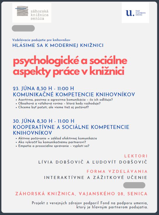 Vzdelávacie podujatie pre knihovníkov Záhorskej knižnice a knižníc okresov Skalica a Senica, ktoré patria do metodickej pôsobnosti Záhorskej knižnice