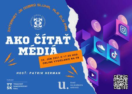 Každý užívateľ internetu alebo sociálnych sietí rieši (v menšej či väčšej miere) otázku ako vnímať médiá, ich silu a ako sa vysporiadať s ich nástrahami. Informácie, ktoré sa k nám prostredníctvom médií dostávajú, majú obrovskú silu. Patrik Herman poodhalí zákulisie mediálneho priemyslu, výroby správ a techniky, ako s nami môžu médiá manipulovať. Podujatie je súčasťou cyklu Knižnica mladým. Online vysielanie na FB začína o 17.00 hod.