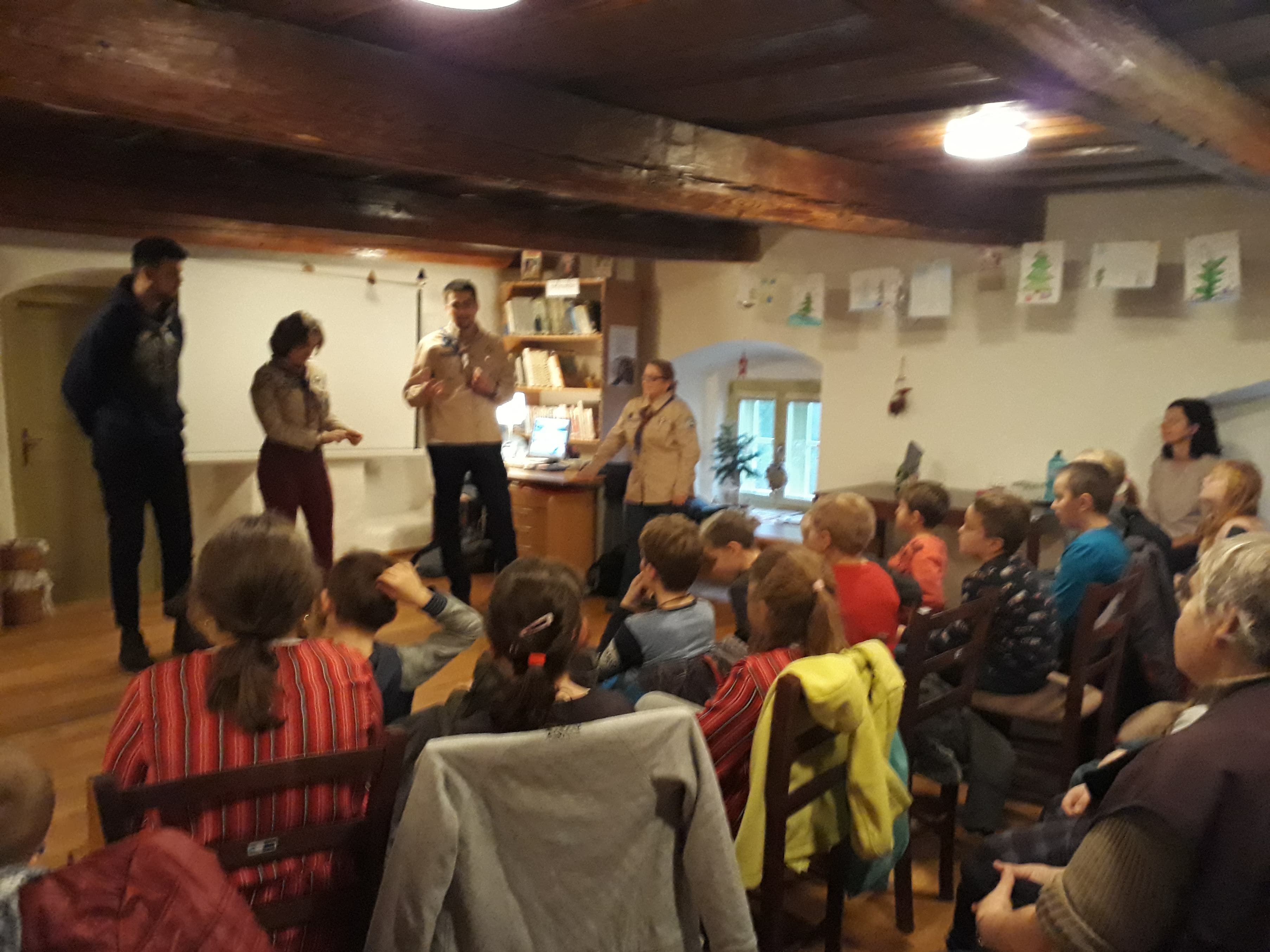 Stretnutie so skautmi zo 75. zboru o. b. Jána Vojtaššáka zo Spišskej Novej Vsi a ich rozprávanie o Betlehemskom svetle.