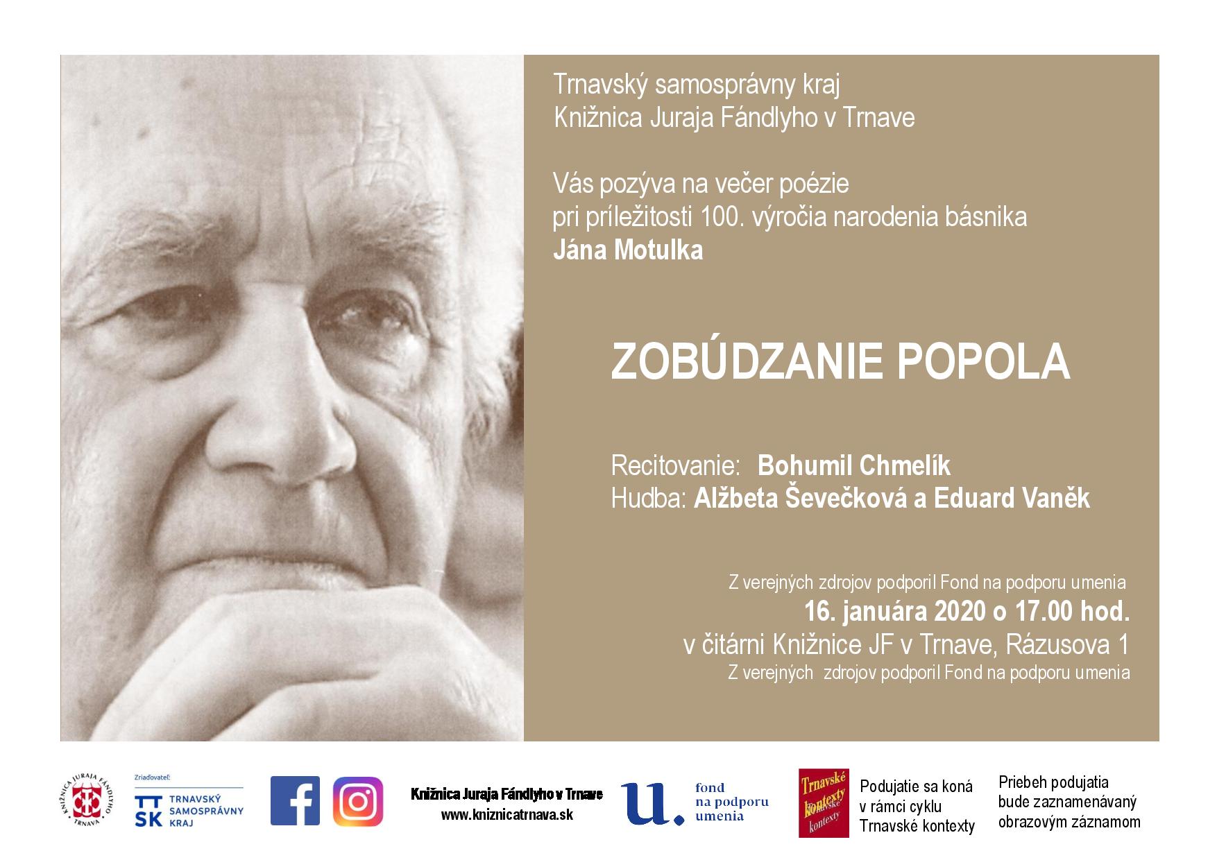 Večer poézie pri príležitosti 100. výročia narodenia básnika Jána Motulka. Podujatie sa koná v rámci cyklu Trnavské kontexty