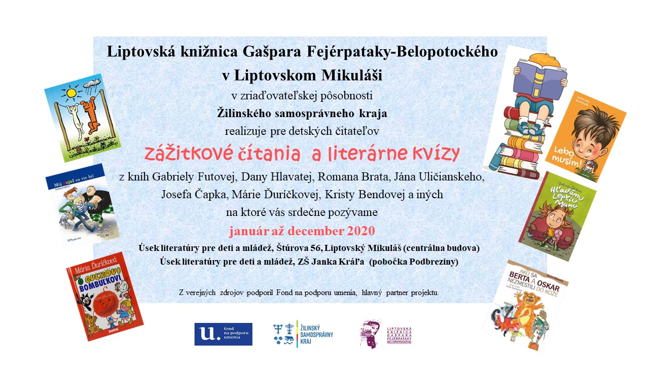 Zážitkové čítanie a literárne kvízy z kníh slovenských autorov sú určené pre deti základných škôl. Január – december 2020.