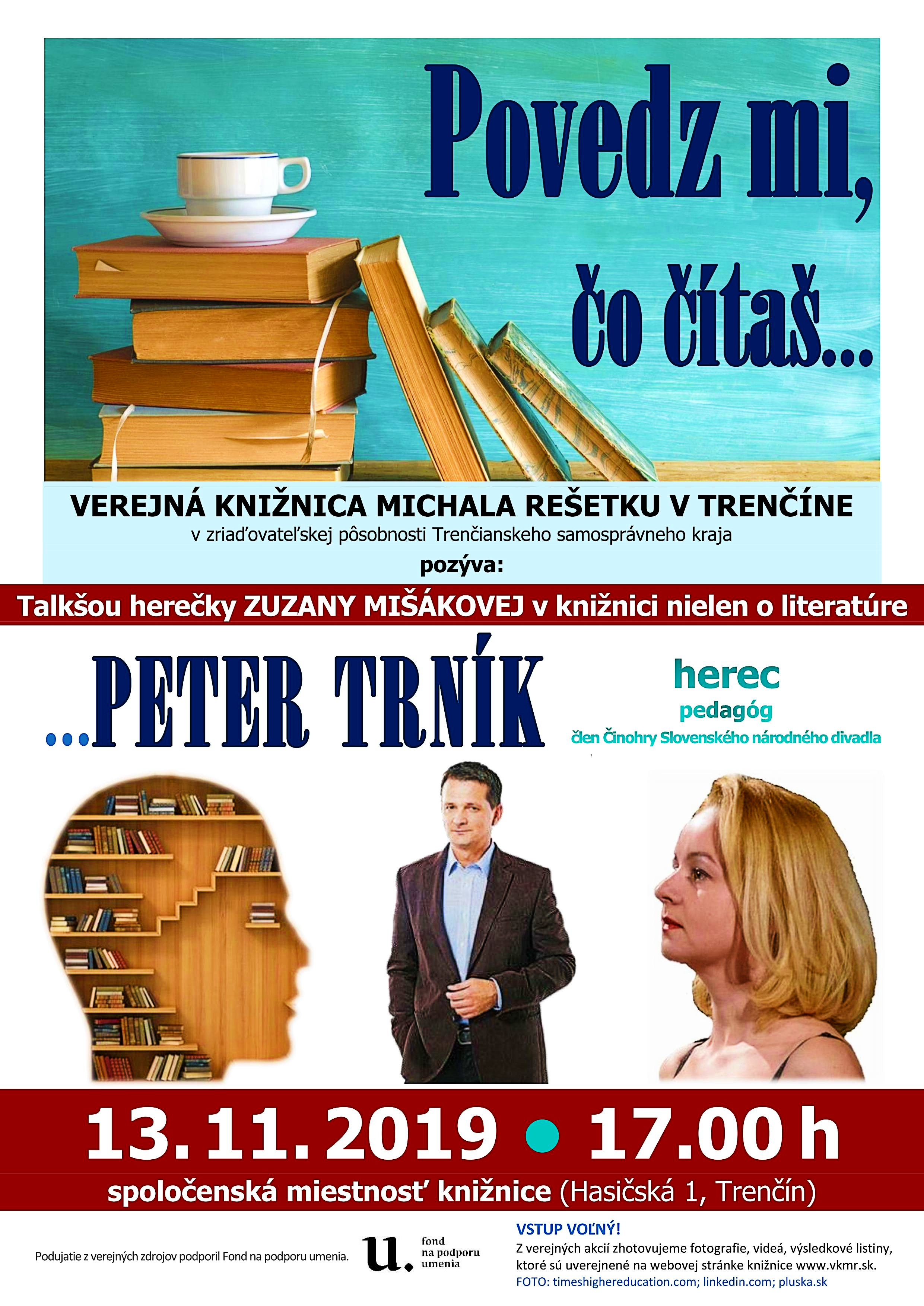 Propagácia významu čítania a literatúry prostredníctvom atraktívnych stretnutí so zaujímavými osobnosťami, ktorých profesia a oblasť pôsobenia zdanlivo nesúvisí s literatúrou a čítaním. Formou talkšou vyvráti túto domnienku a potvrdí význam čítania pri každej ľudskej činnosti aktuálny hosť: herec a pedagóg Peter Trník.