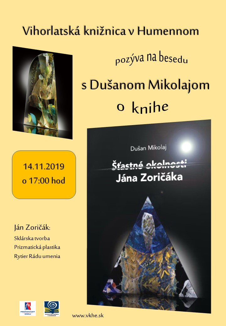 Beseda s literátom a redaktorom Dušanom Mikolajom bude zameraná na jeho najnovšiu knihu: Šťastné okolnosti Jána Zoričáka.