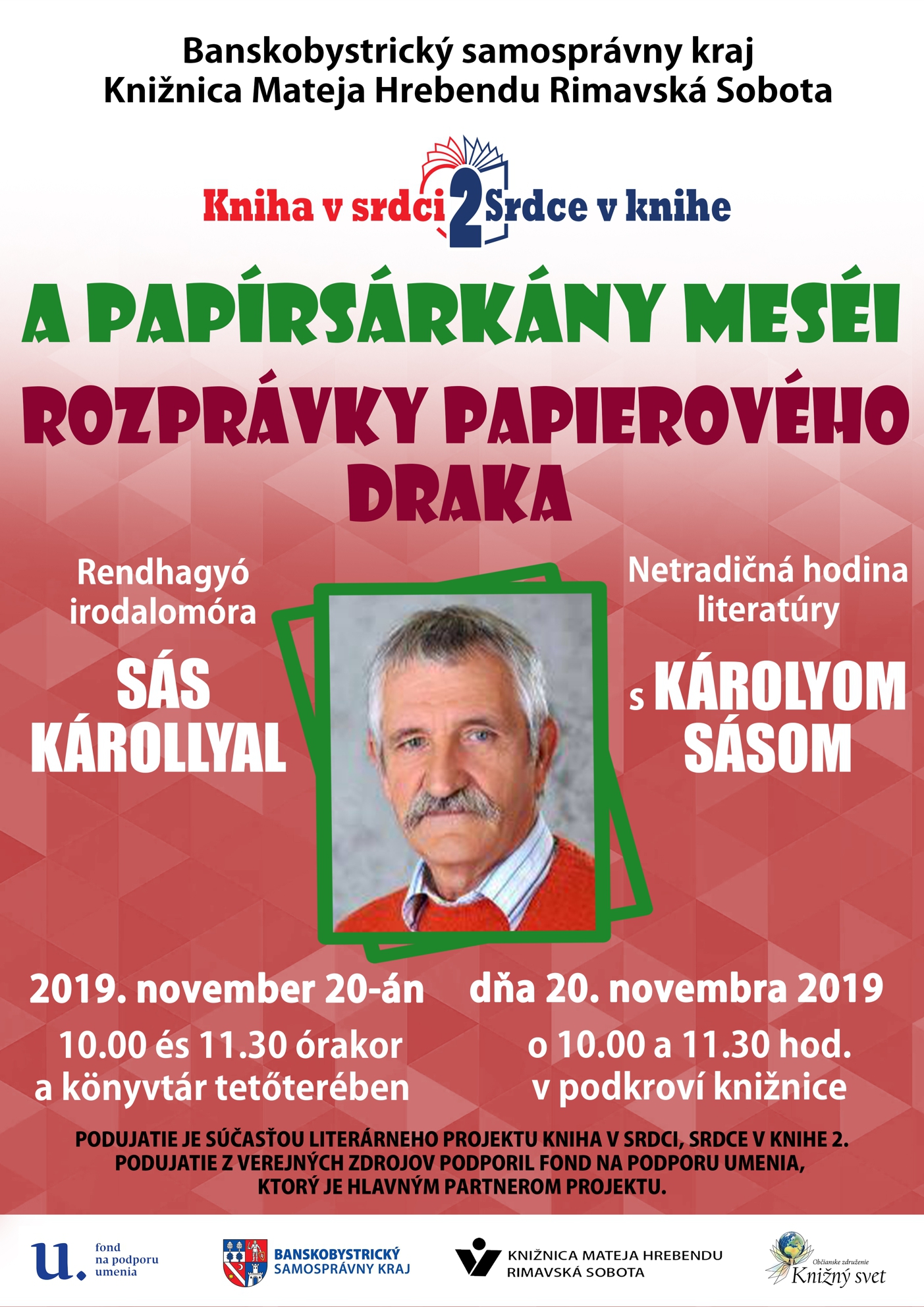 Literárny projekt Kniha v srdci, srdce v knihe 2 pozostáva z niekoľkých podujatí, ktorých prioritným cieľom je prezentácia literatúry, snaha o zvýšenie záujmu o čítanie a knihy.