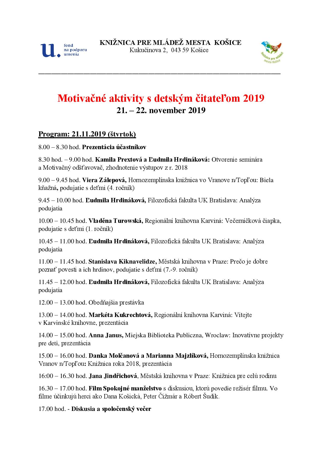 Miesto a termín konania: Košice, Slovenská republika / 21.11.2019 - 22.11.2019