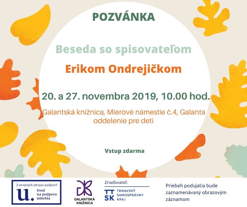 Už 15.11.2019 nás čaká beseda so spisovateľkou detských kníh Ivanou Jungovou. Na Večerných tvorivých dialógoch privítame ilustrátora detskej literatúry Juraja Martišku prvý decembrový týždeň, v piatok 6.12.2019