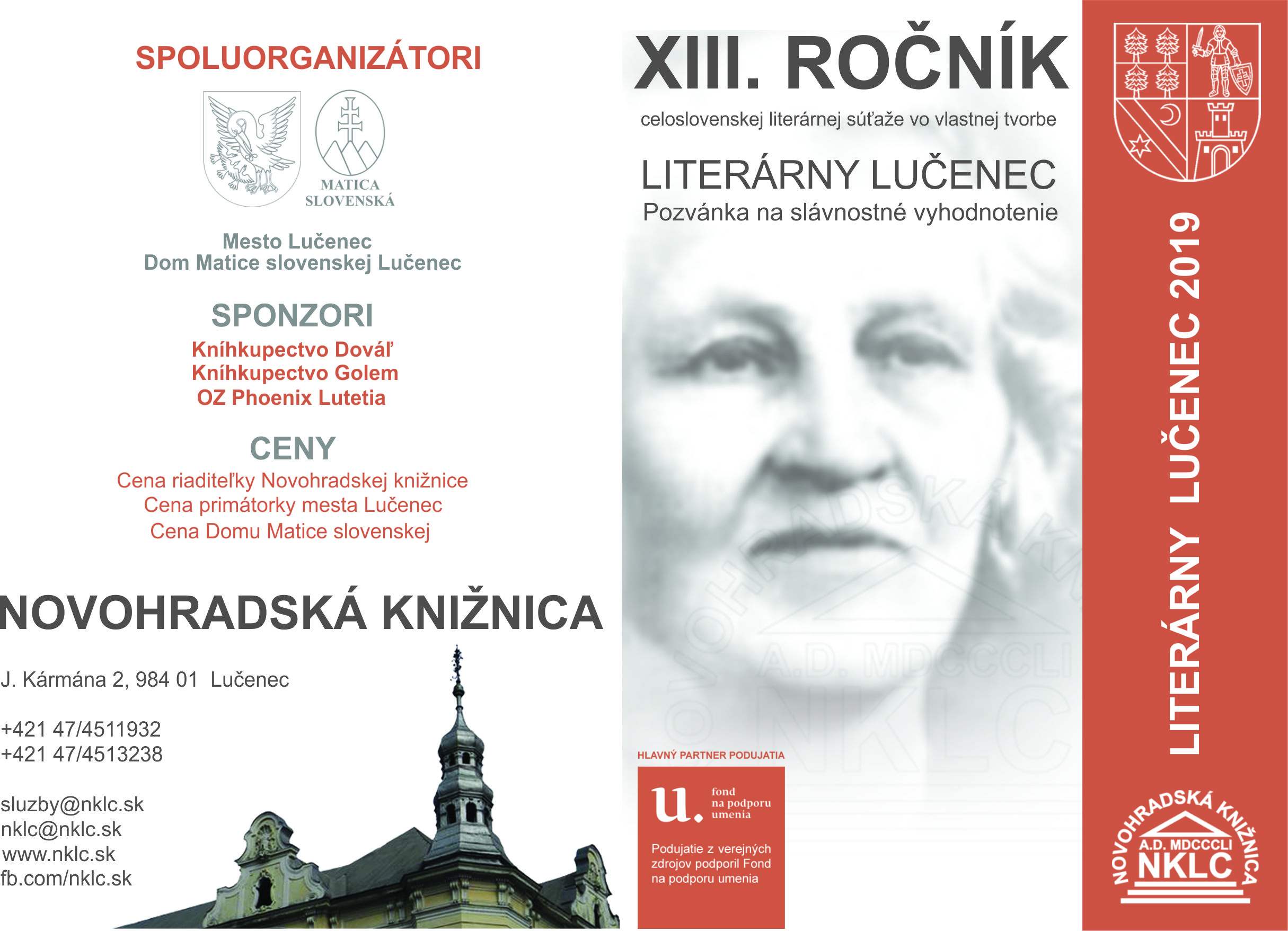 Pozvánka na slávnostné vyhodnotenie XIII.ročníka celoslovenskej literárnej súťaže vo vlastnej tvorbe "Literárny Lučenec"